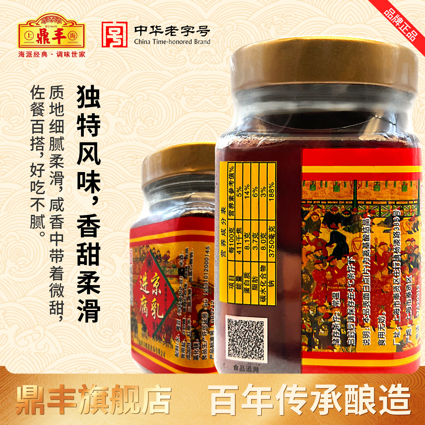 鼎丰进京腐乳上海经典特产玫瑰腐乳360g瓶红腐乳霉豆腐乳红方腐乳