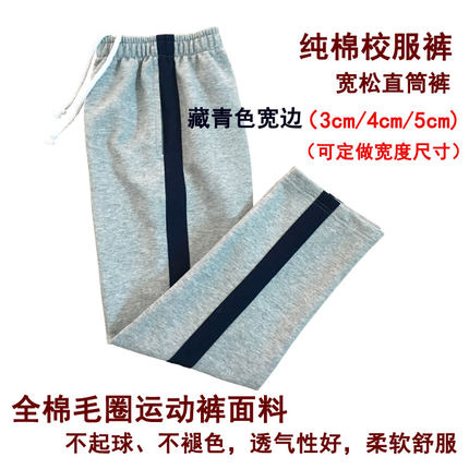学生裤灰色纯棉男女校服裤藏青色宽边条杠宽松直筒运动裤长裤秋