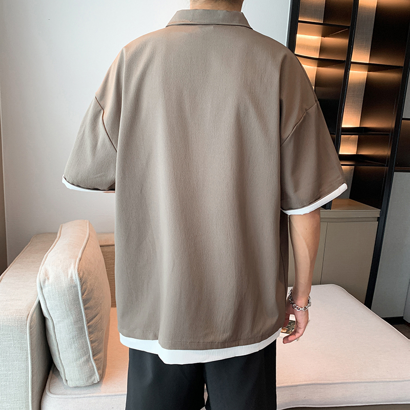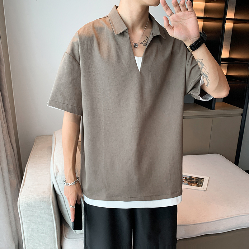 夏季冰丝纯色短袖polo衫t恤男宽松翻领原宿风潮流半袖体恤衫上衣