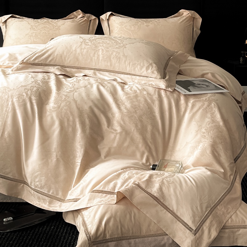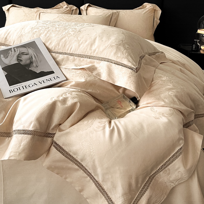 轻奢高级A类提花四件套简约镂空宽边被套床单床笠款新款床上用品