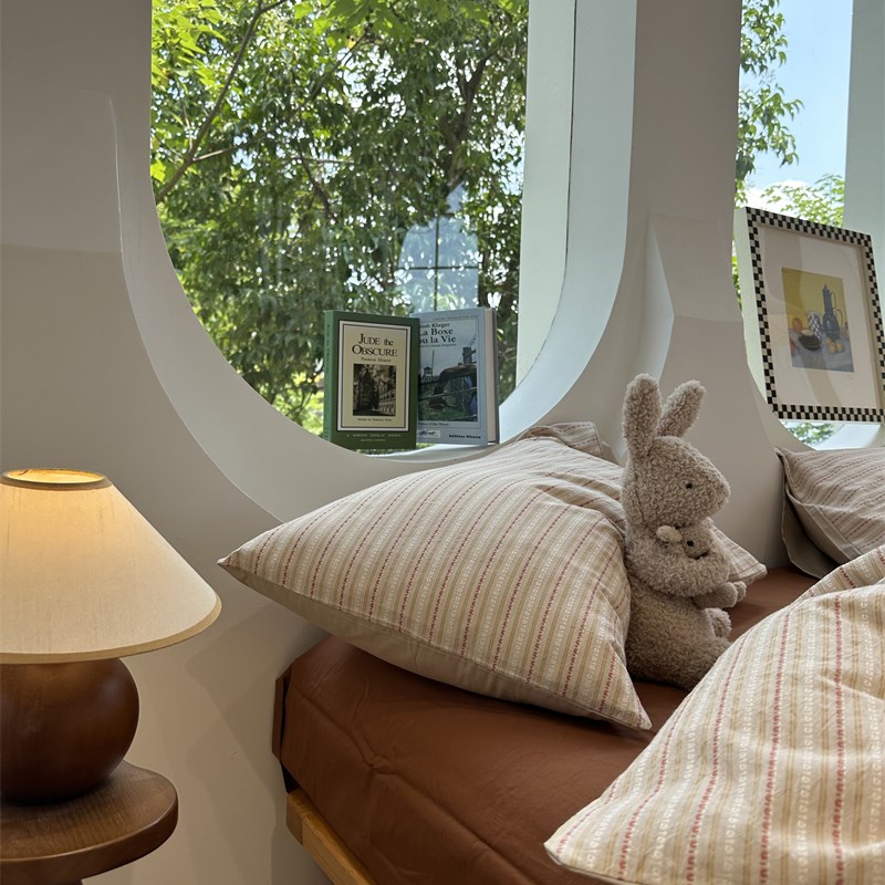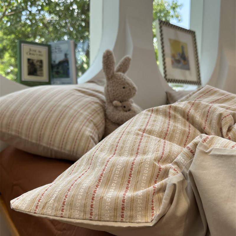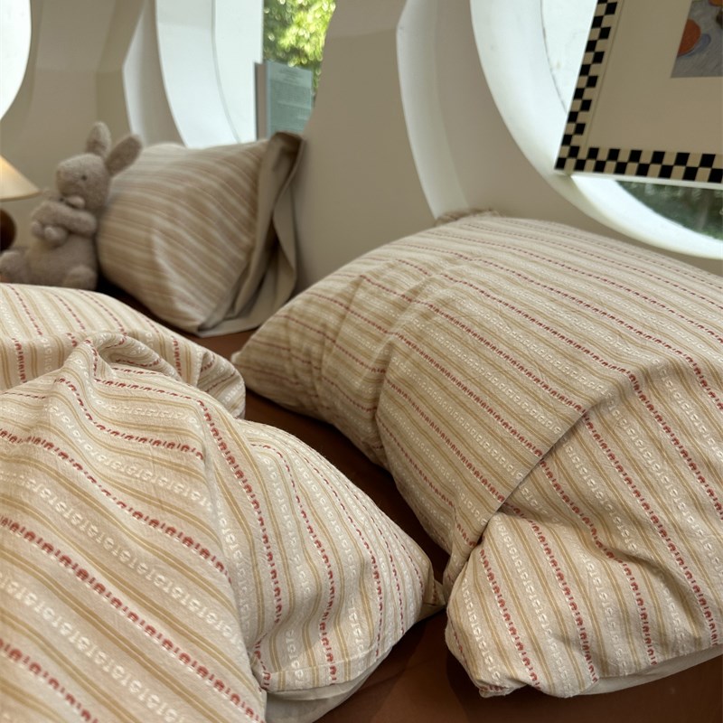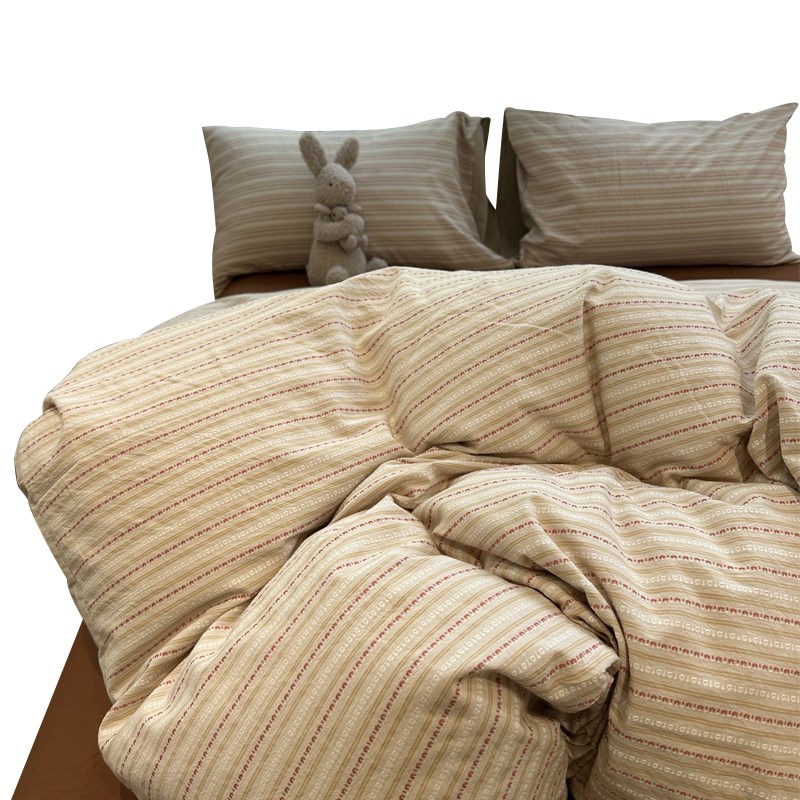 美拉德色织水e洗棉条纹提花卡其色四件套1.5m1.8公寓纯棉床单被套