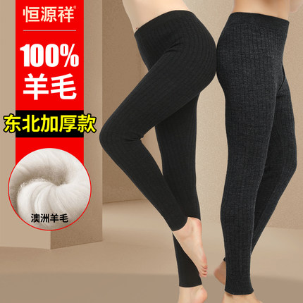 恒源祥100%纯羊毛裤男女针织毛线保暖裤精纺加厚打底裤冬季羊绒裤