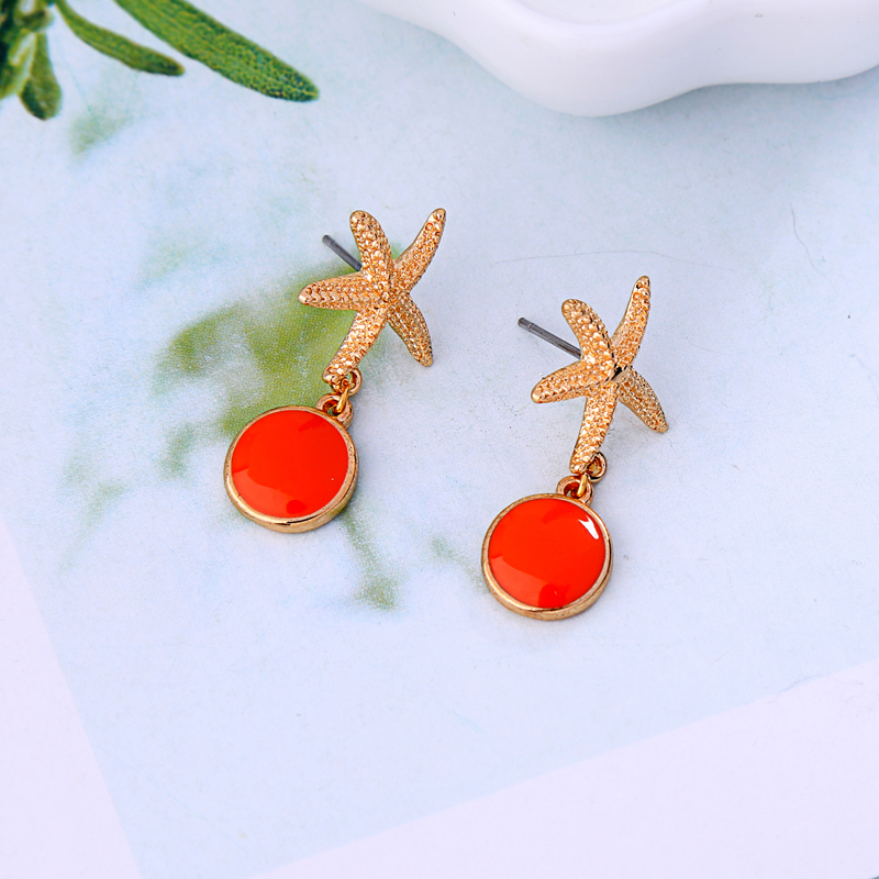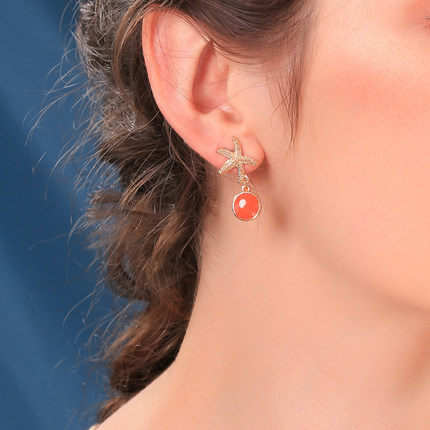 瑞丽杂志款海星时尚耳环潮流街拍小众耳钉显脸瘦红色宝石耳坠耳饰