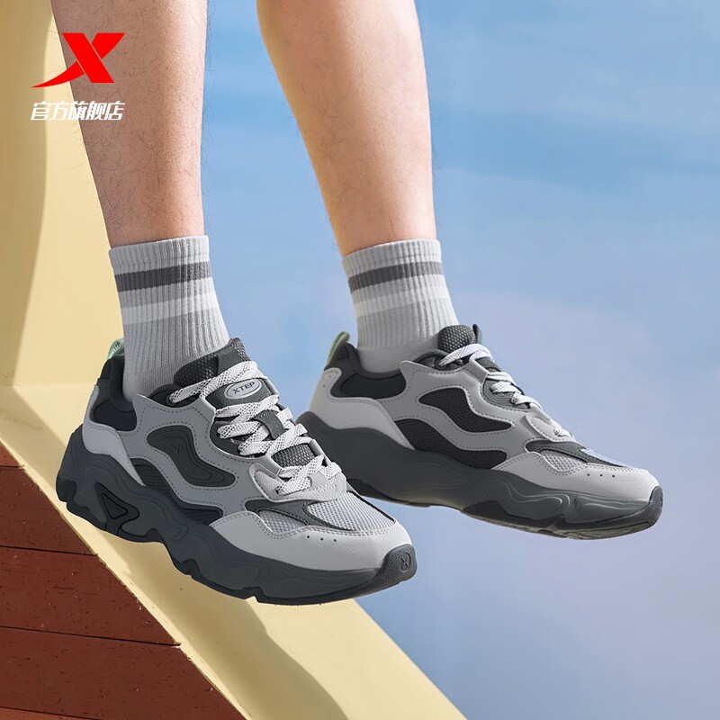特步星迹2.0休闲鞋男鞋春季革面透气轻便百搭老爹鞋运动鞋子女鞋
