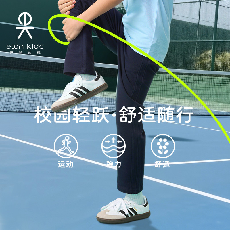 伊顿纪德校服儿童装毛圈布学生直筒运动长裤男女童运动裤子25K908
