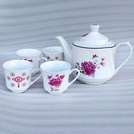 家用陶瓷小茶杯老式茶碗简约中国结功夫茶具套装陶瓷茶壶盖碗套装