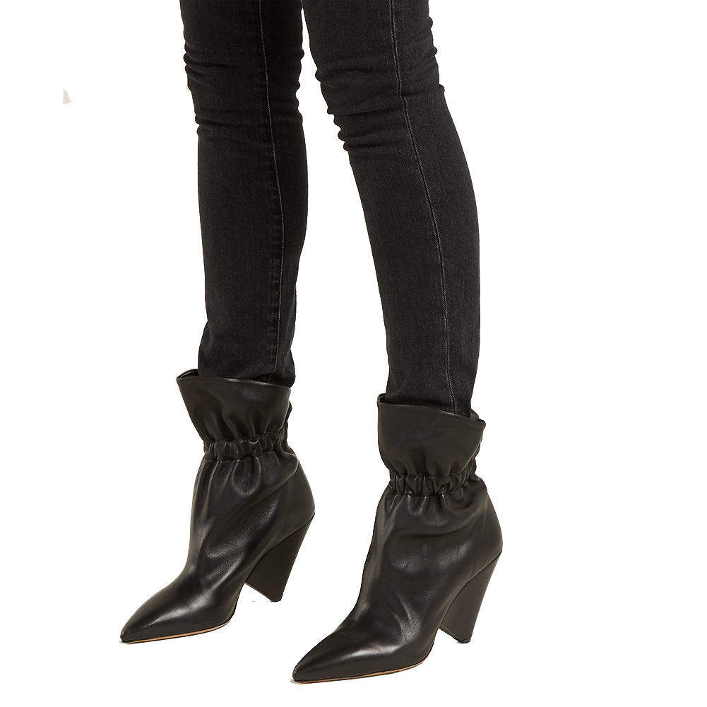 新款黑色尖头锥形跟松紧短踝靴外贸大码春秋时装成都女鞋跨境货源