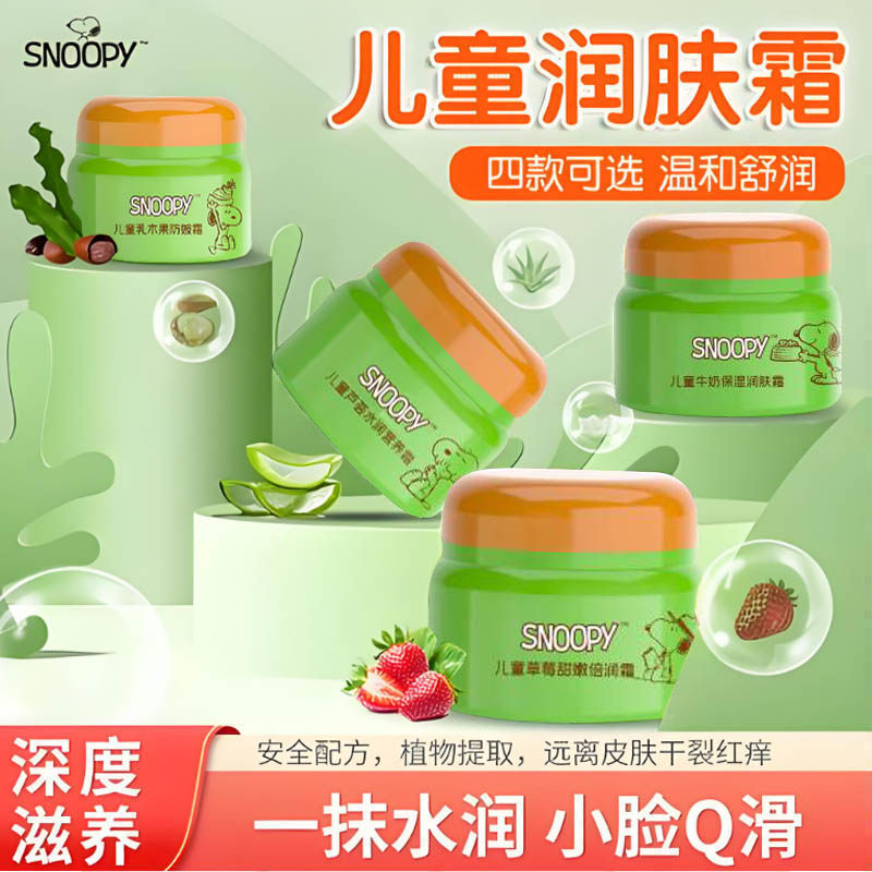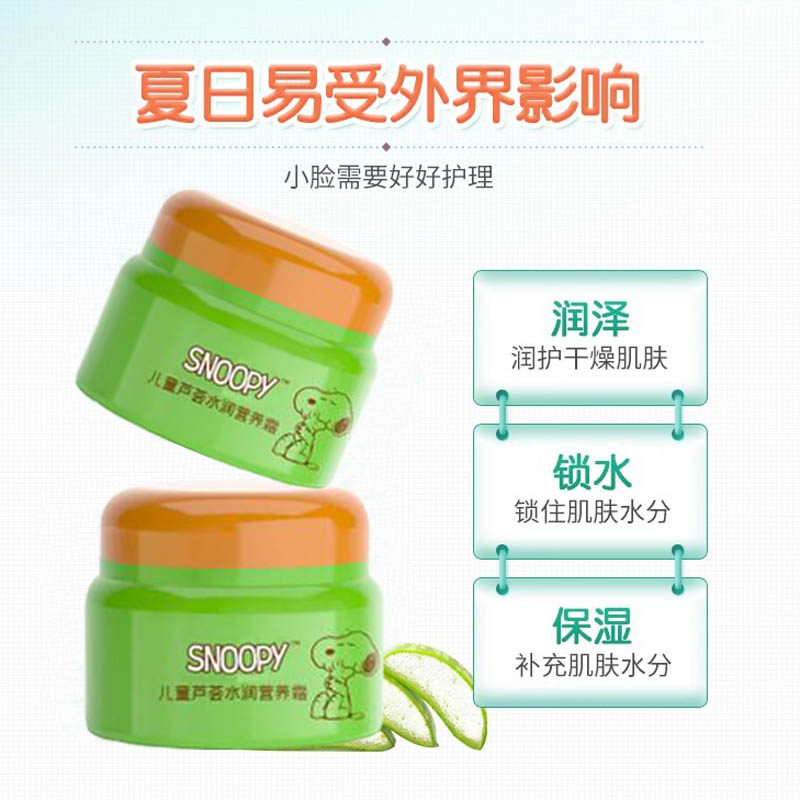 史努比儿童芦荟保湿润肤霜宝宝学生防护面霜乳霜补水滋润营养正品