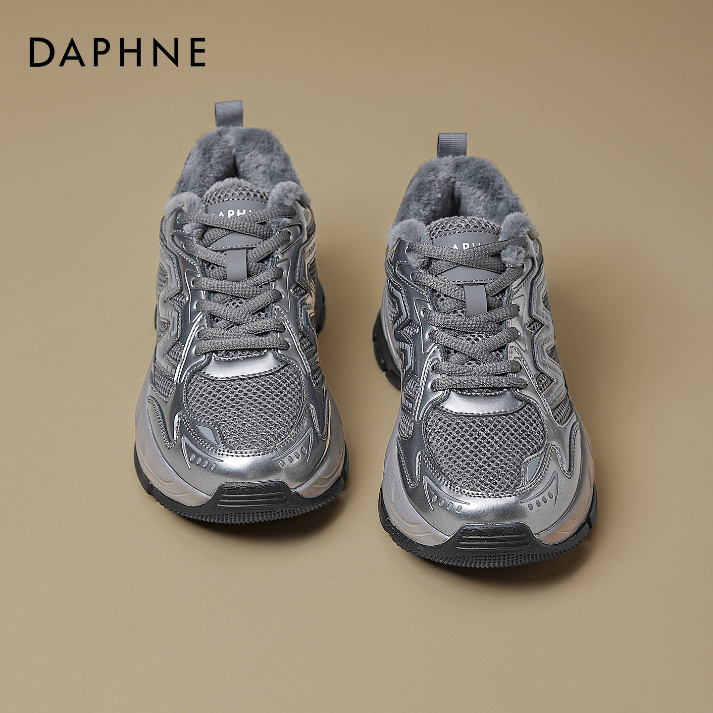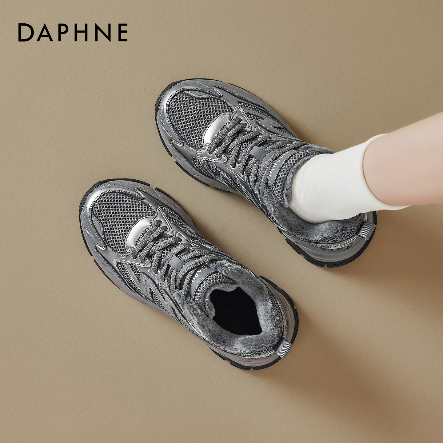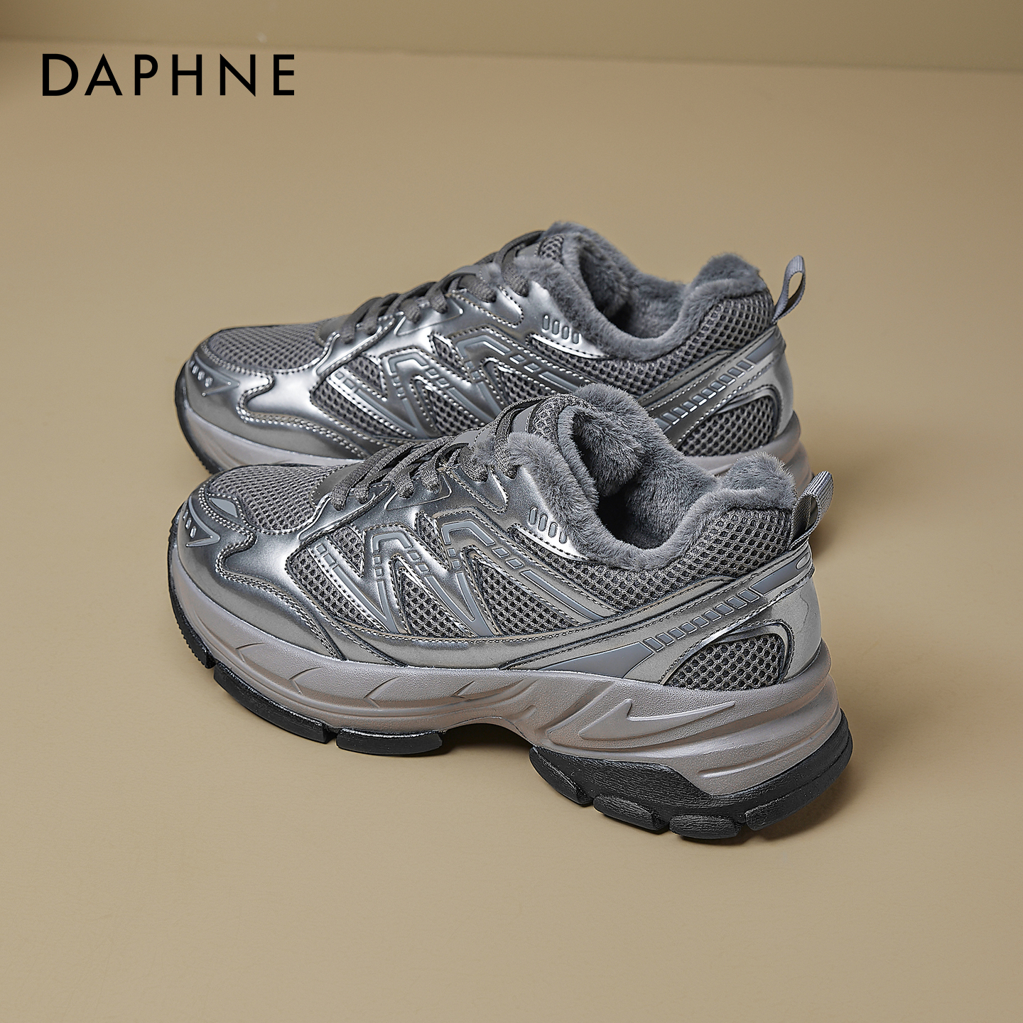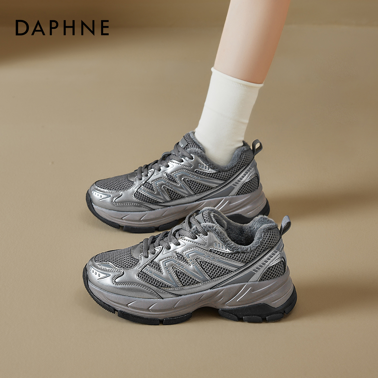 达芙妮灰色加绒老爹鞋女款2025新款厚底增高女鞋冬季保暖运动棉鞋