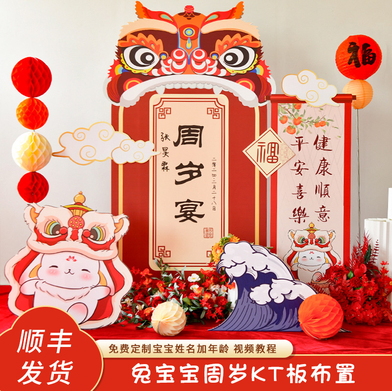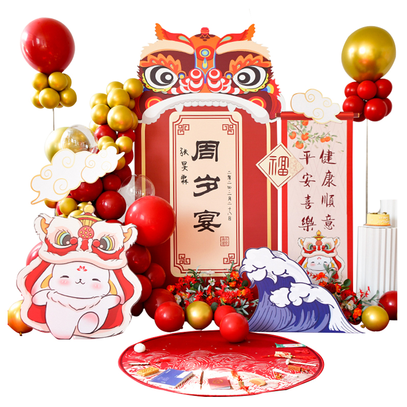 男孩一岁kt板抓周仪式宝宝周岁宴生日布置场景气球背景墙装饰女孩