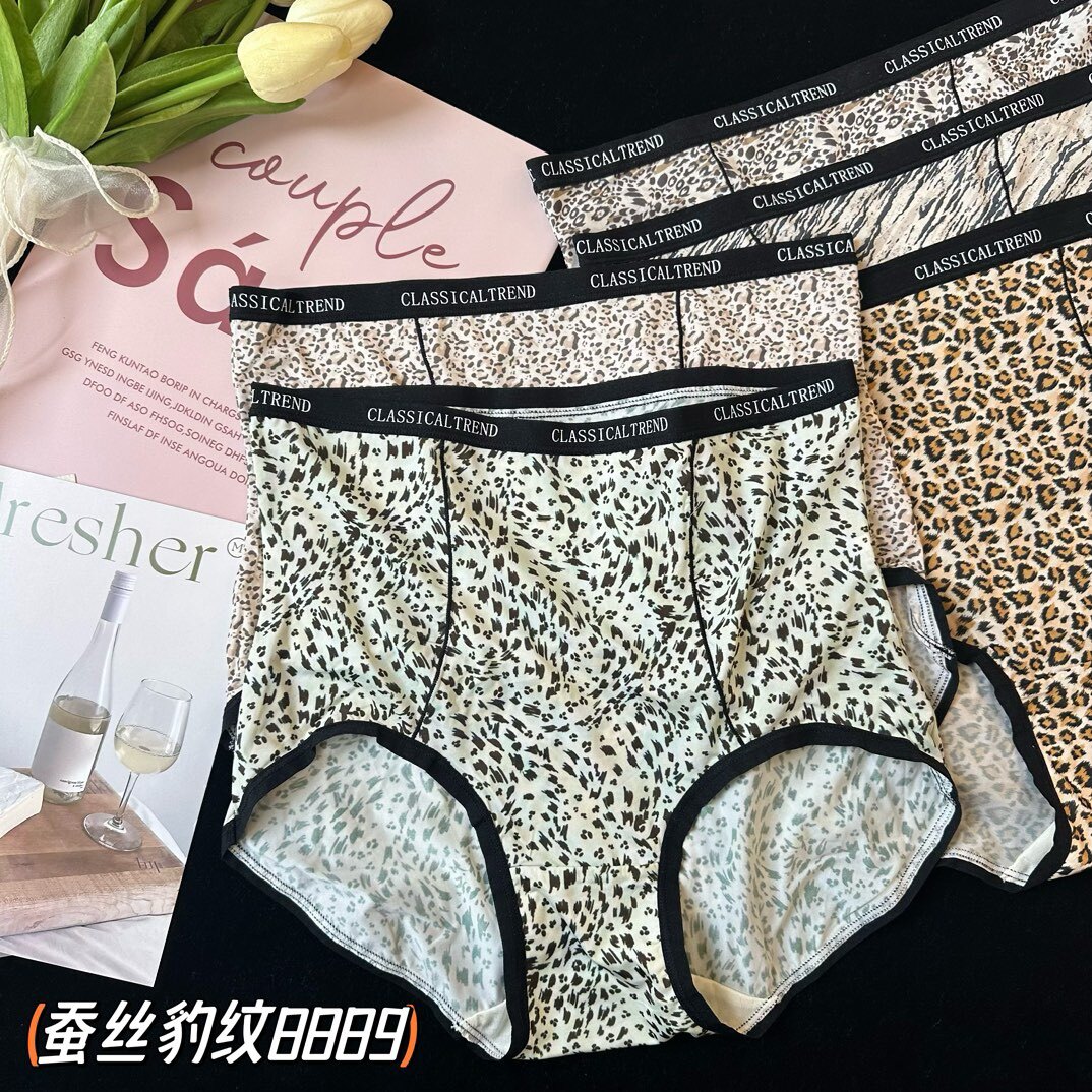 缇娅朵正品5条盒装豹纹蚕丝抗菌时尚莫代尔纯棉裆高腰女三角内裤