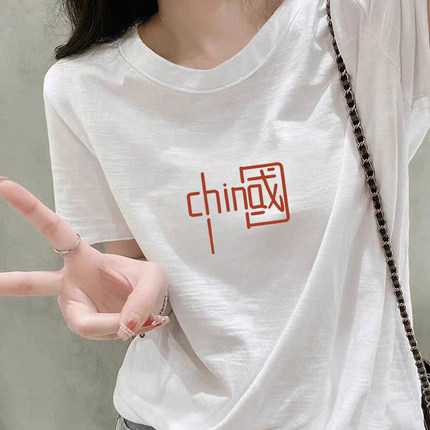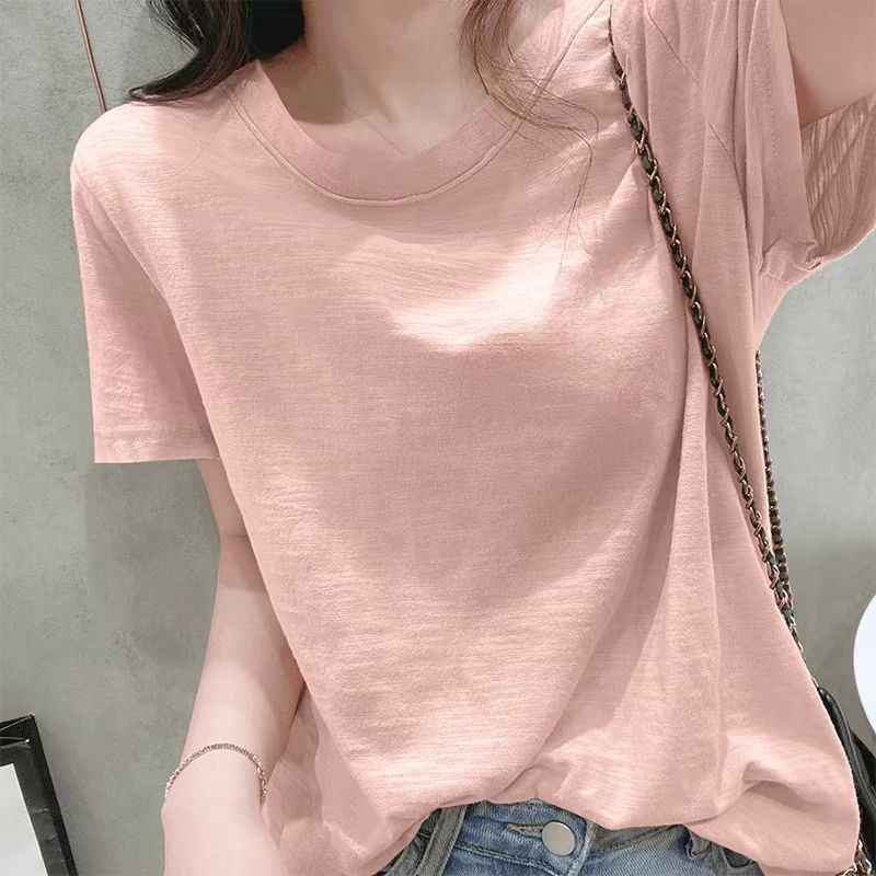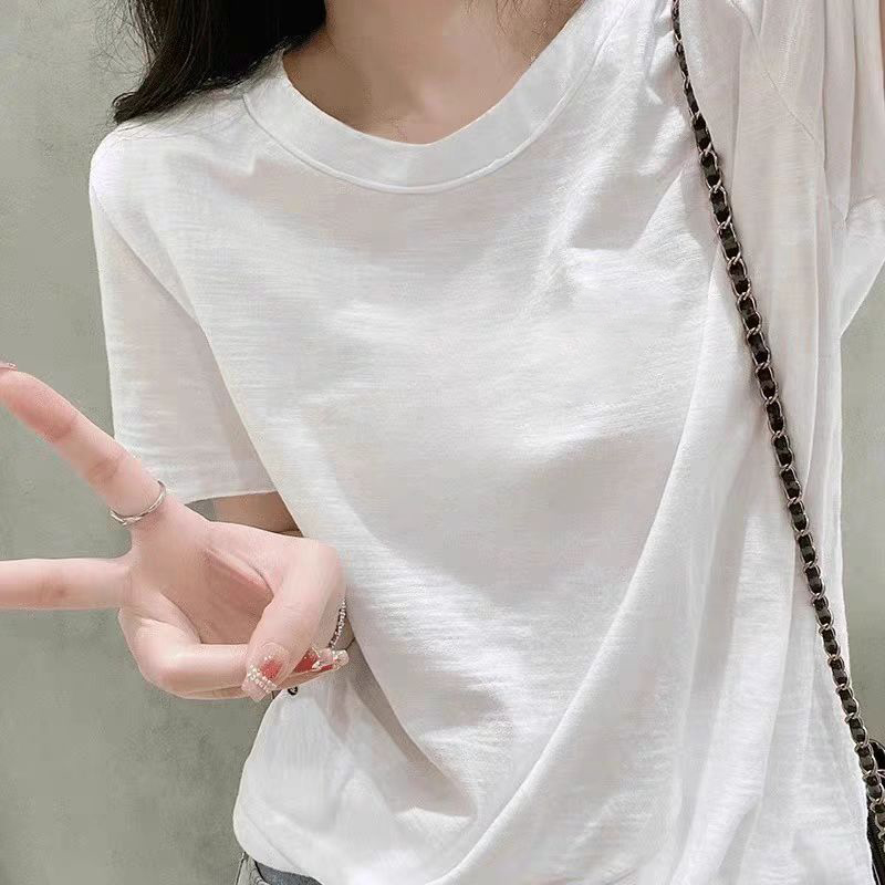 2025夏季新款竹节棉短袖T恤韩版宽松圆领印花竹节棉百搭上衣打底