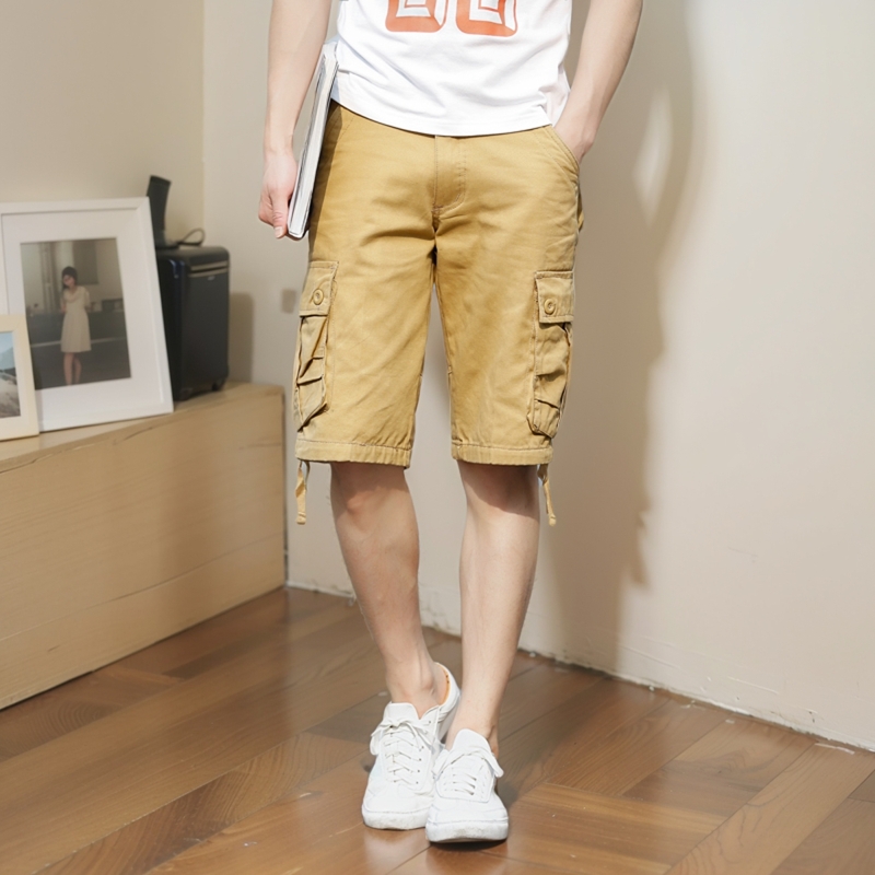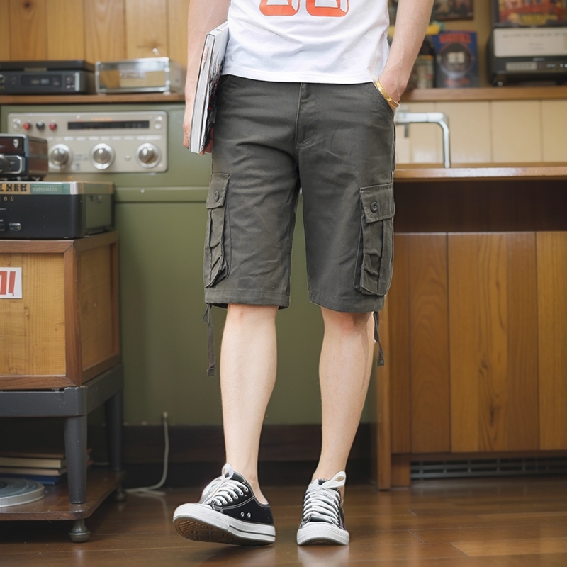 夏季大码宽松五分短裤男中裤沙滩多口袋运动休闲马裤七分工装裤子