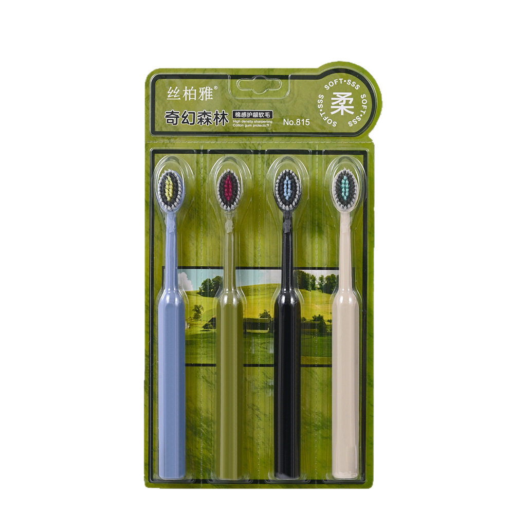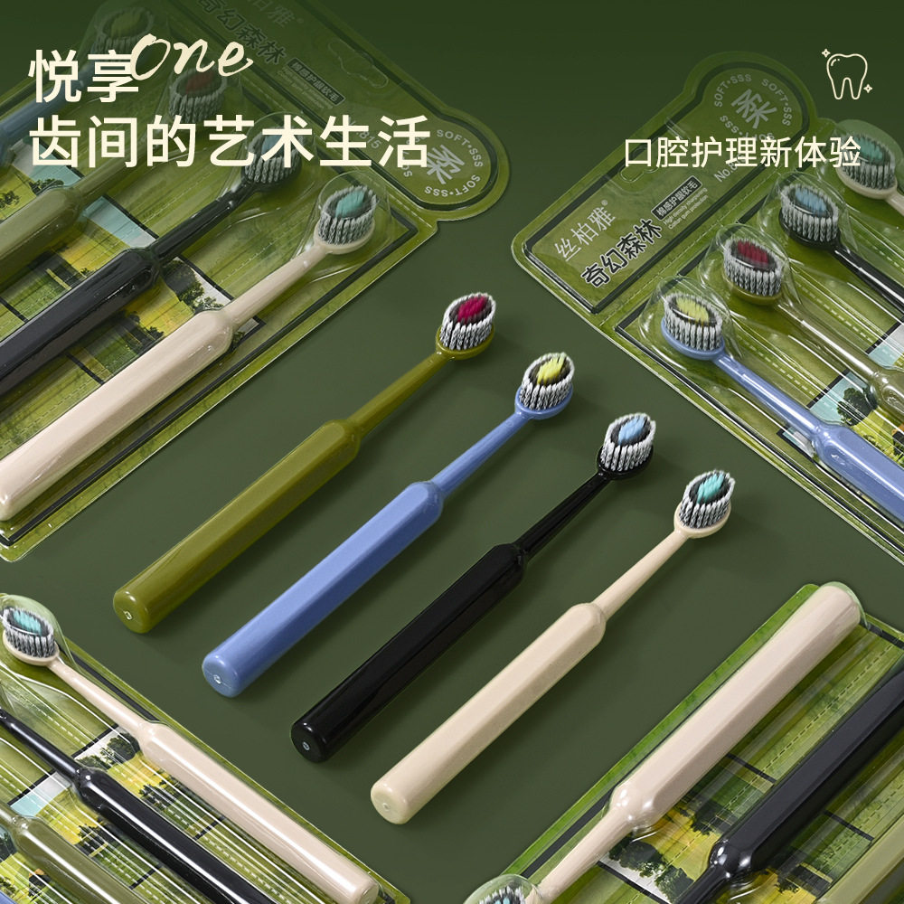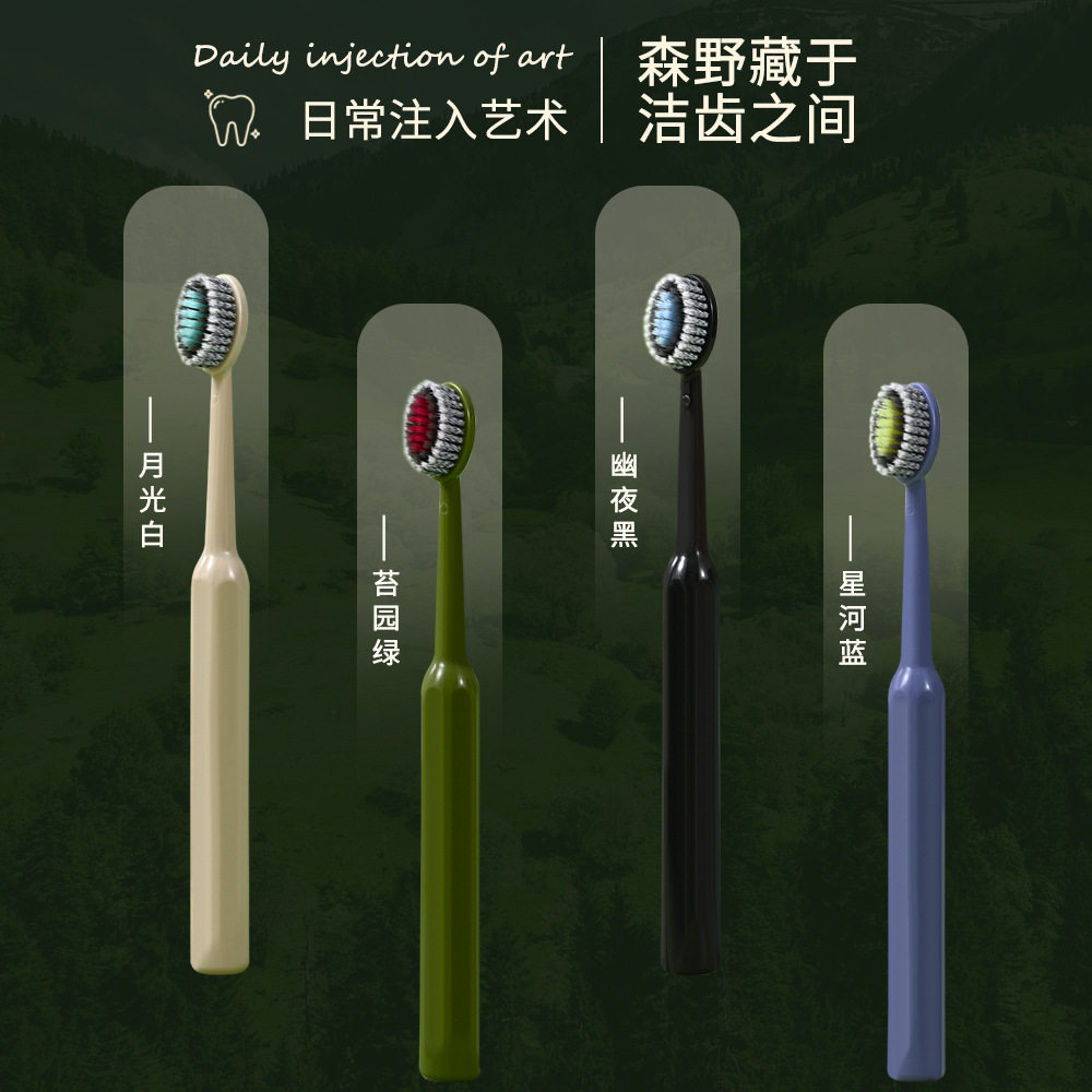 抖快【奇幻森林】高档软毛山型宽头牙刷深度洁齿成人情侣家用轻奢