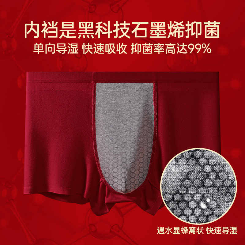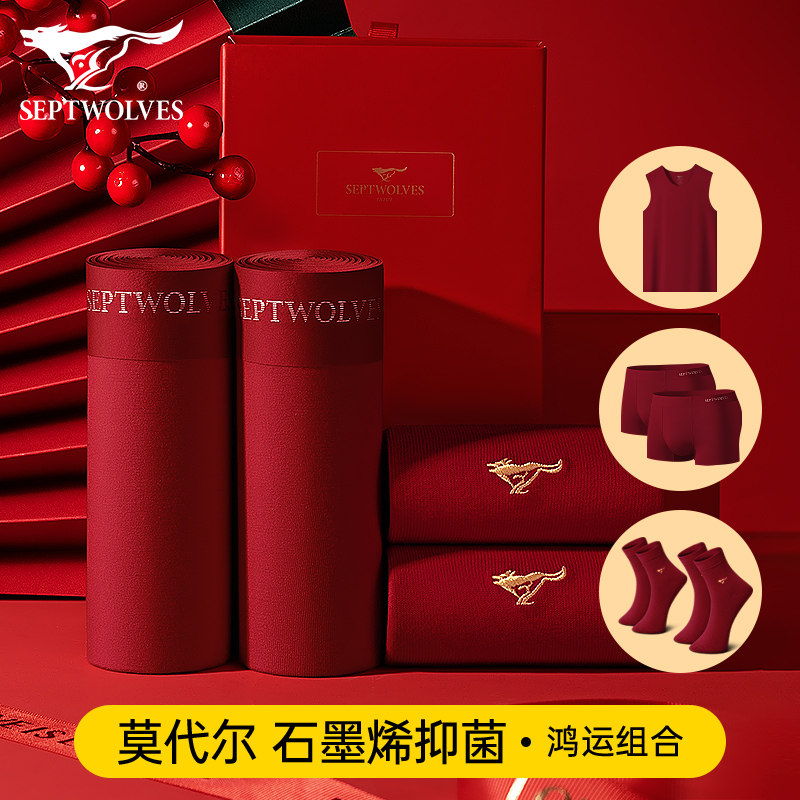 七匹狼本命年礼物男士内裤爸爸马年衣服结婚内衣红色短裤袜子套装