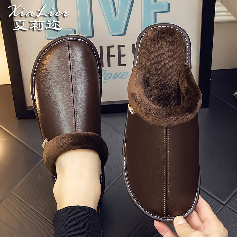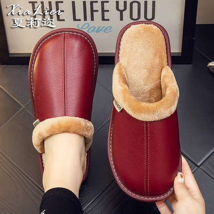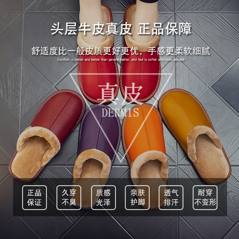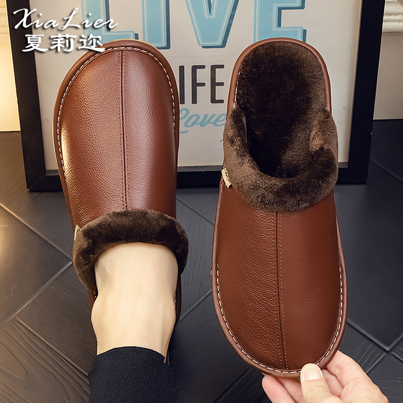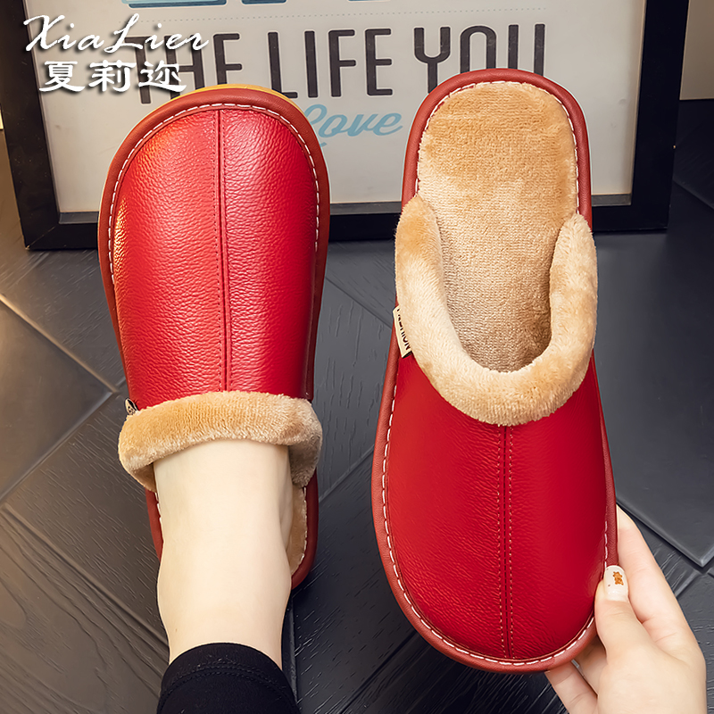 真皮棉拖鞋男女情侣秋冬季居家室内家用防滑纯牛皮保暖防水皮拖鞋