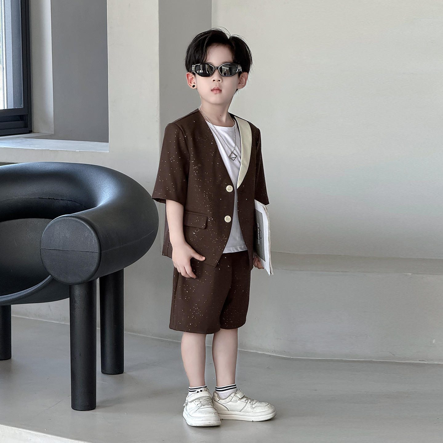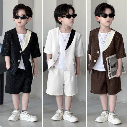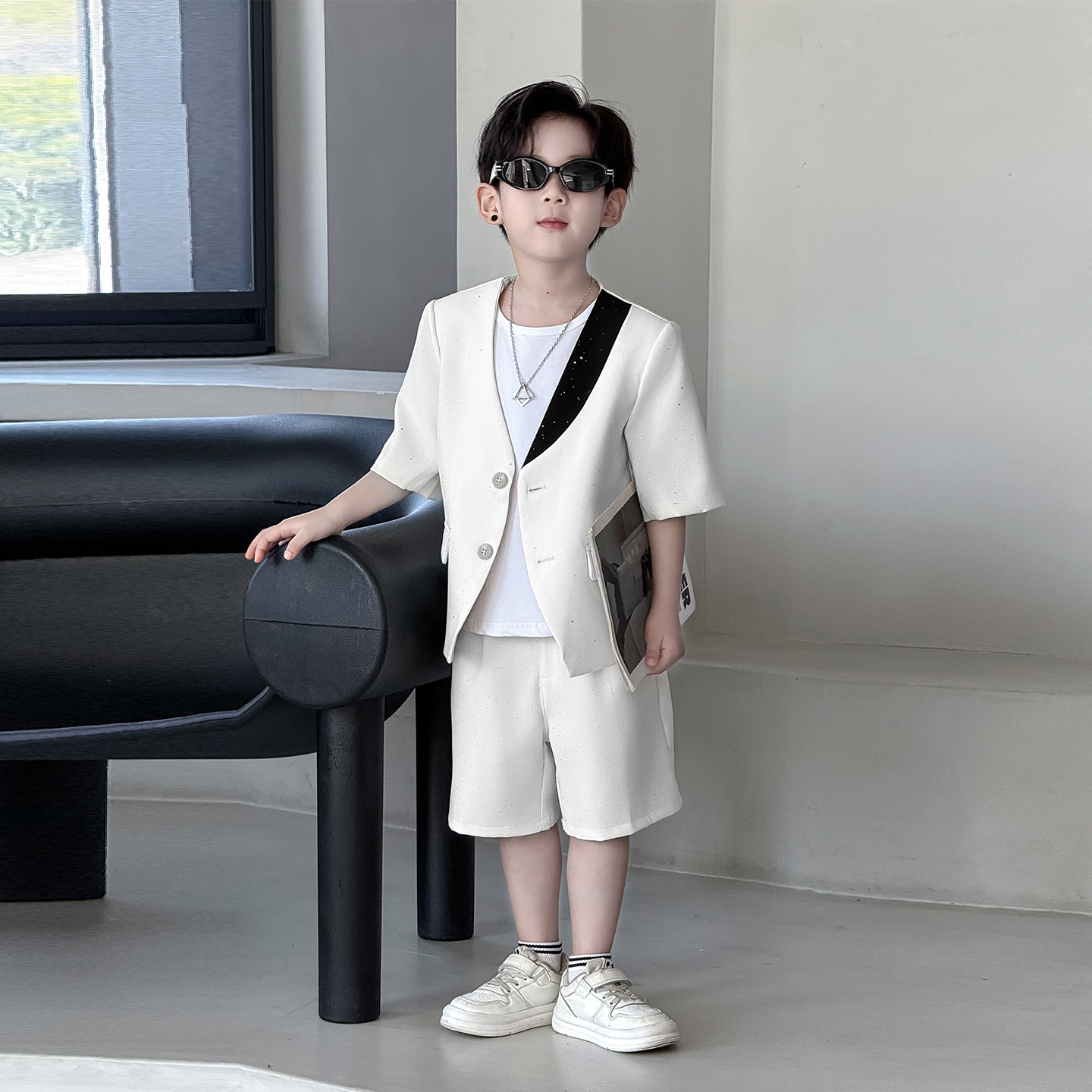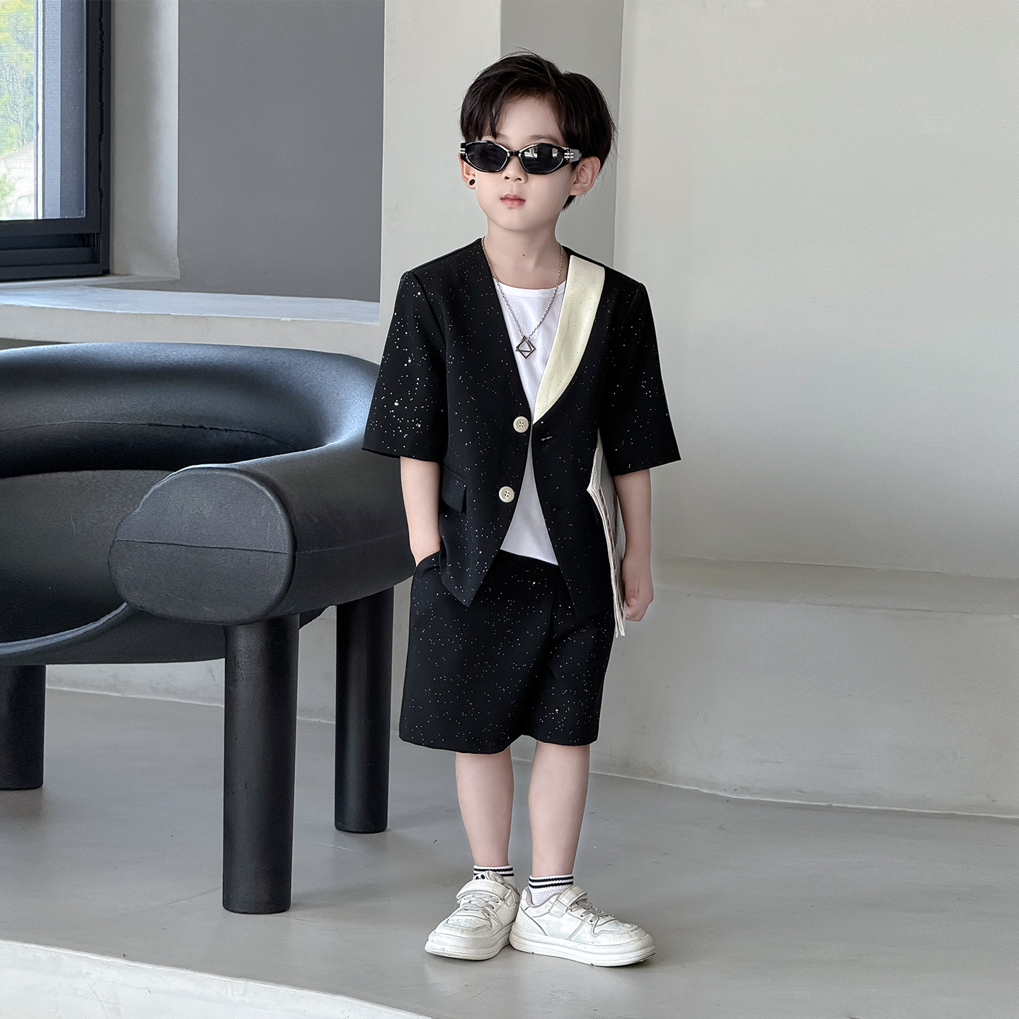 儿童小西装套装夏季高级感男宝生日花童礼服中大童男孩主持人演出