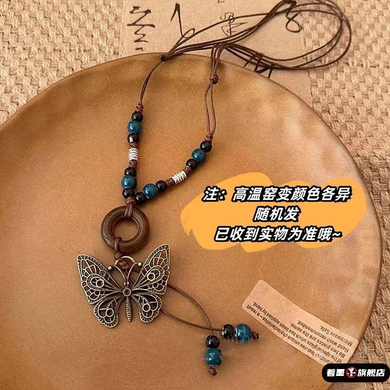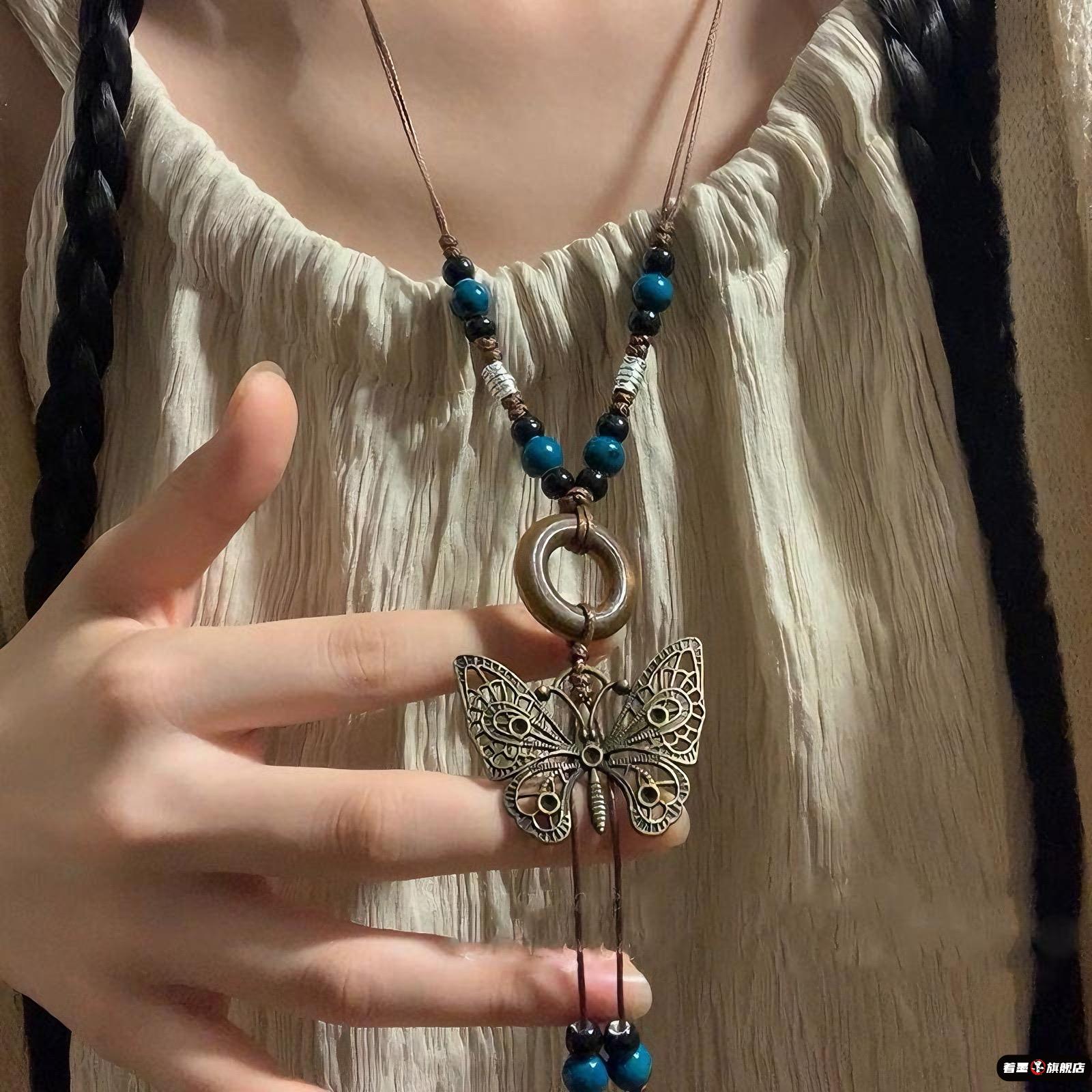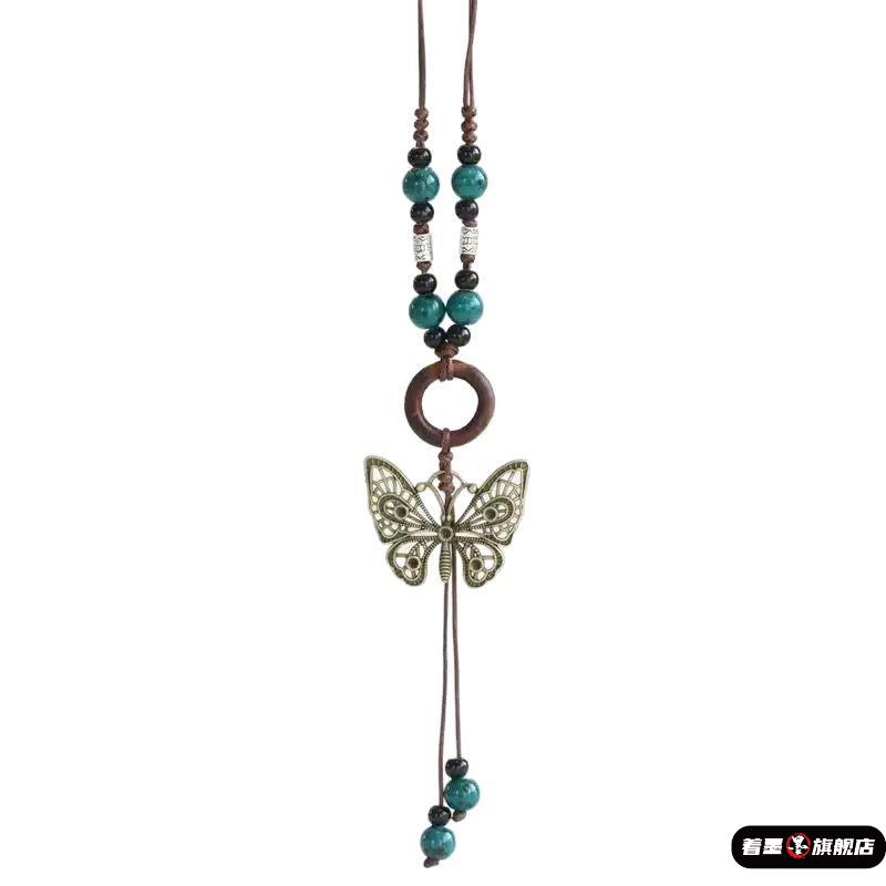 波西米亚复古蝴蝶长款项链女新中式民族风古着中古古风毛衣链配饰