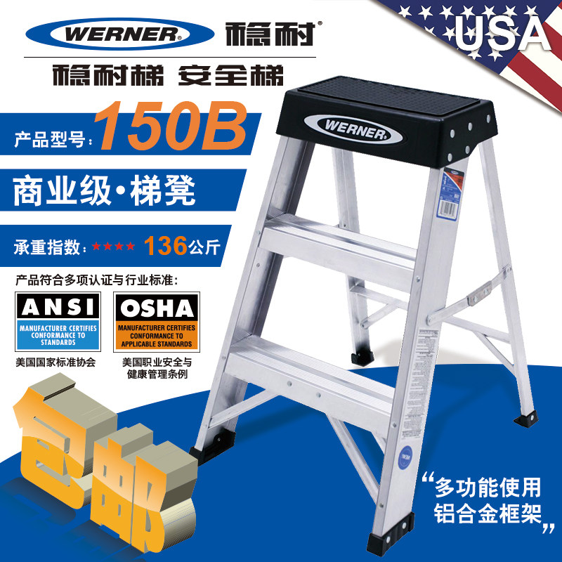 Werner/稳耐重工业级铝合金人字梯凳 玻璃钢加宽梯脚重载型梯凳