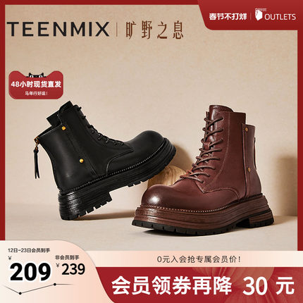 天美意复古厚底增高马丁靴女鞋休闲短靴皮靴子冬新款KDX05DD4