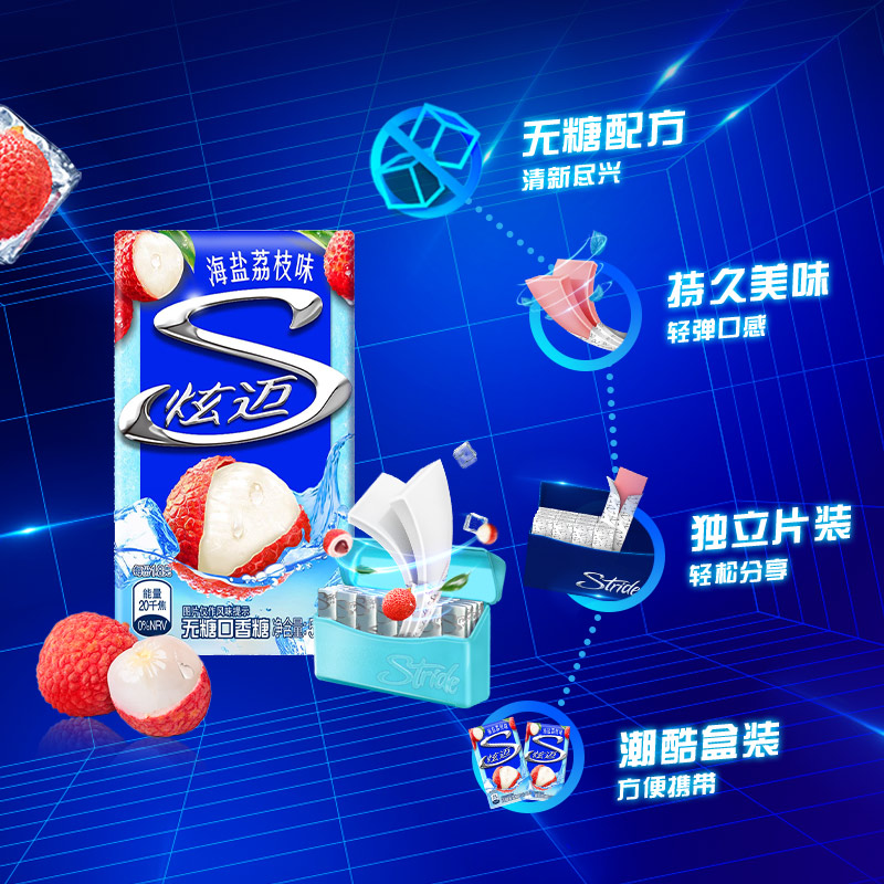 炫迈无糖口香糖海盐荔枝味糖果持久清新口气网红休闲零食凑单