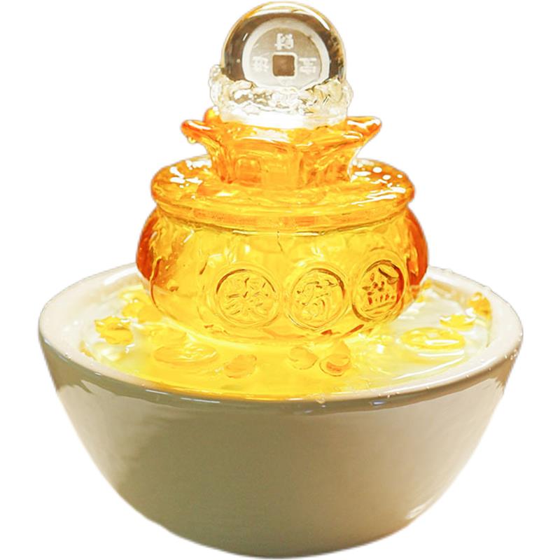 小型开业乔迁送礼风水轮流水器生财聚宝盆家居客厅前台玻璃品摆件