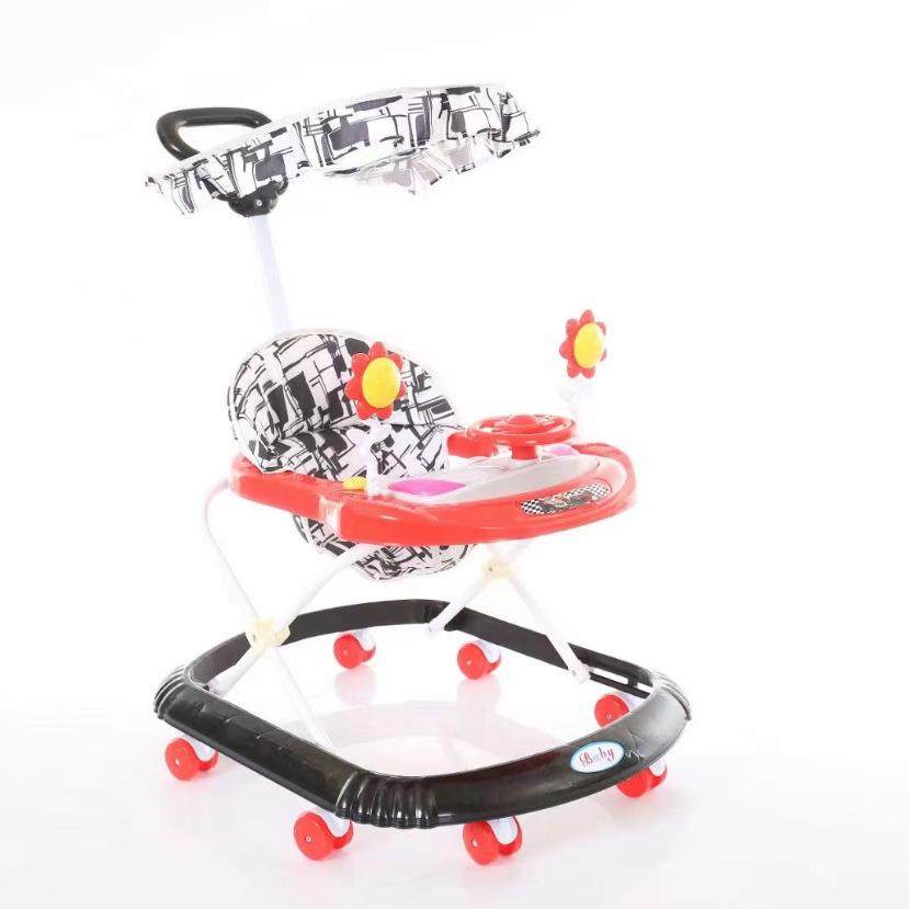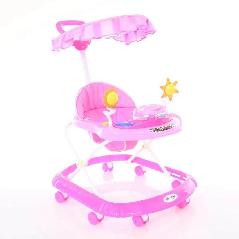 婴儿学步车多功能防侧翻助步车学步车6-7-18个月手推可坐叠带顶篷