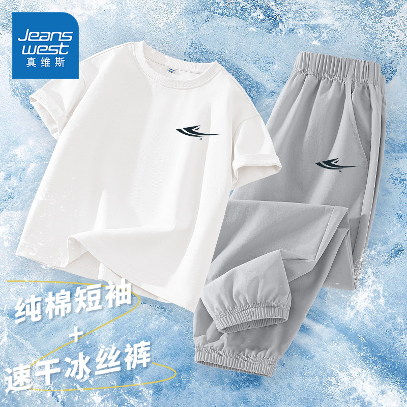 真维斯童装男童2025新款套装中大童夏季纯棉短袖t恤儿童薄款夏装