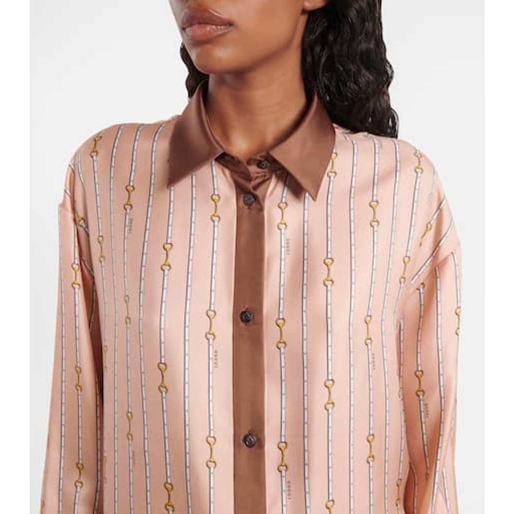 香港直邮Gucci 古驰 女士 马衔扣宽松款真丝衬衫