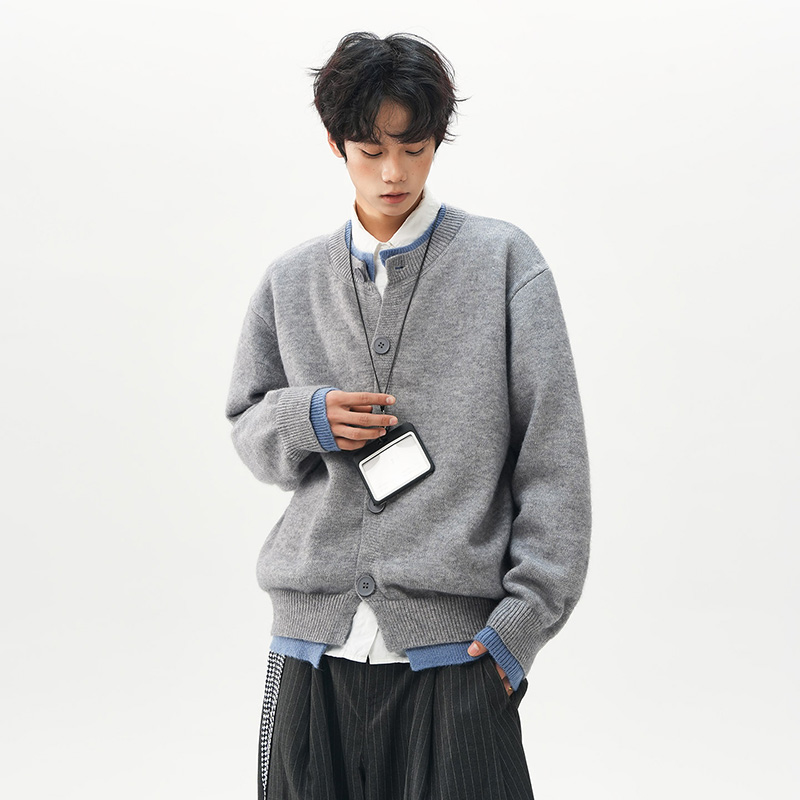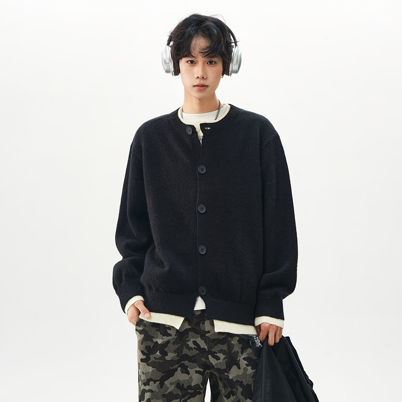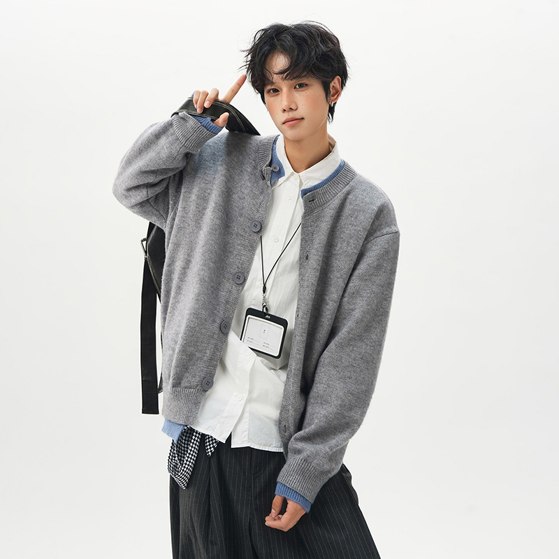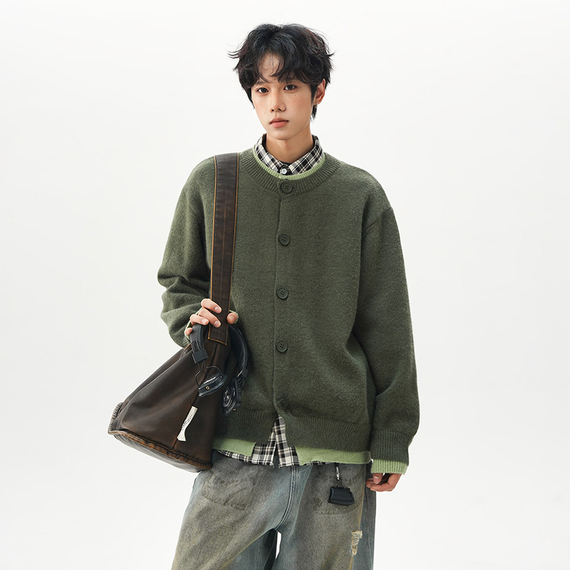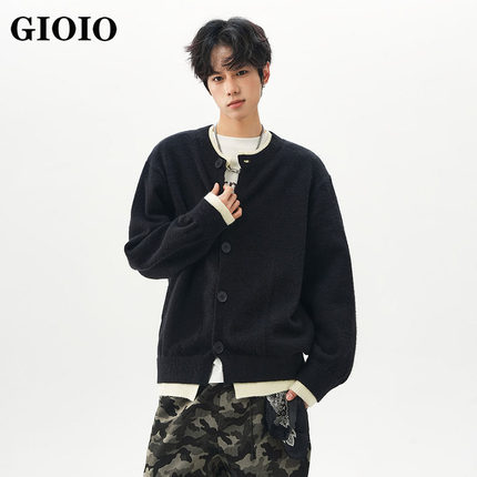美式假两件撞色开衫毛衣男秋季新款潮牌慵懒感针织衫男款休闲外套