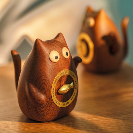 《转运神喵》高档实木桌面摆件
