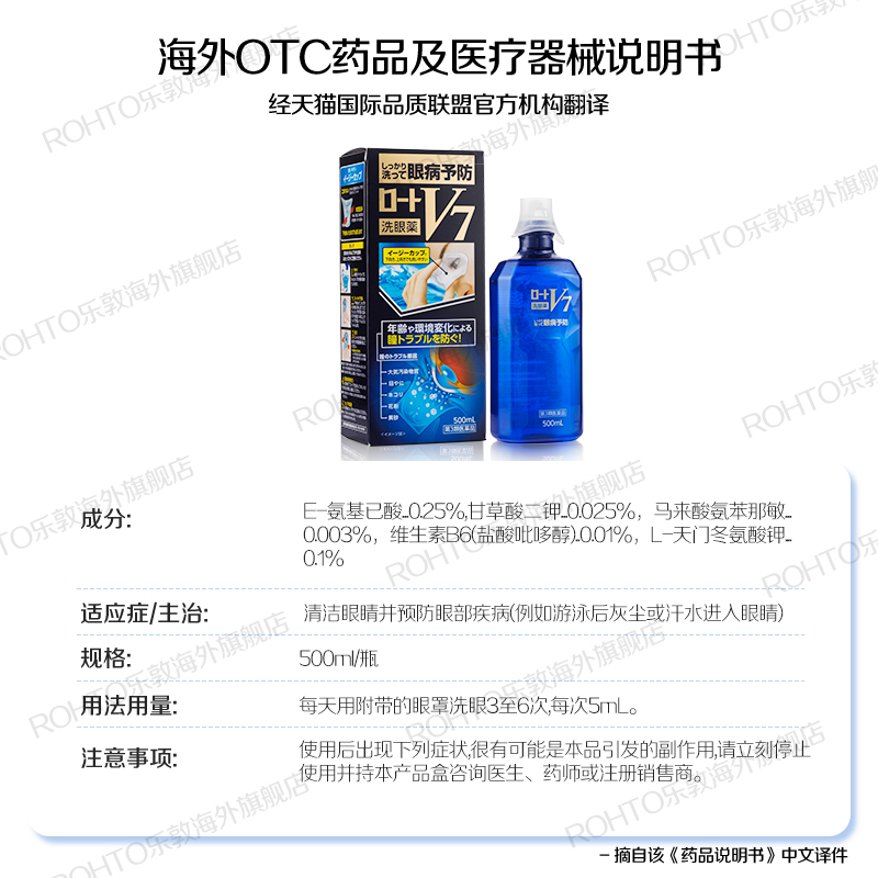 乐敦V7多功能清洁洗眼液润眼抗菌消炎缓解眼睛干涩疲劳花粉症过敏