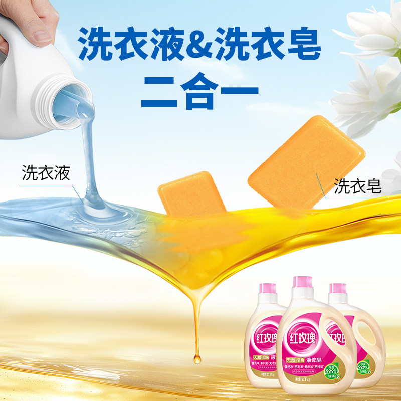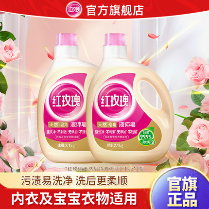 老国货红玫瑰液体皂2.1kg2瓶天然皂角洗衣液留香除菌除螨内衣可用
