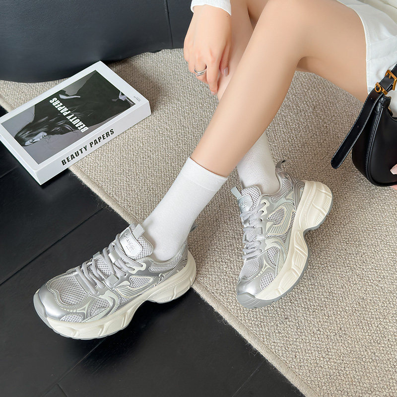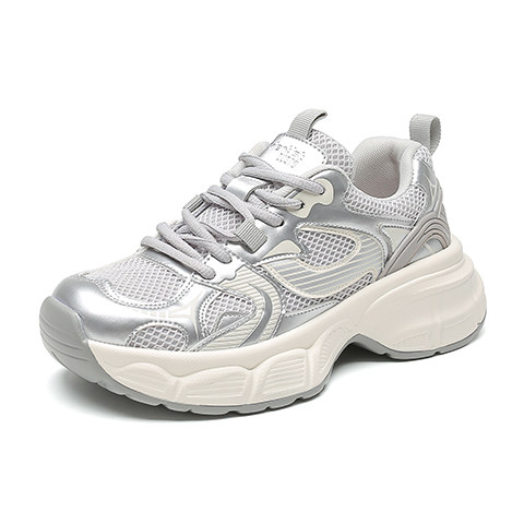 大东灰色增高老爹鞋女2025新款秋冬今年流行的鞋子厚底轻便运动鞋