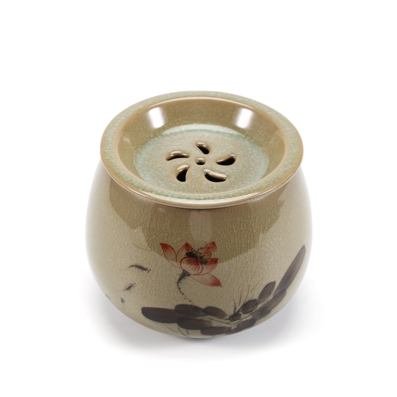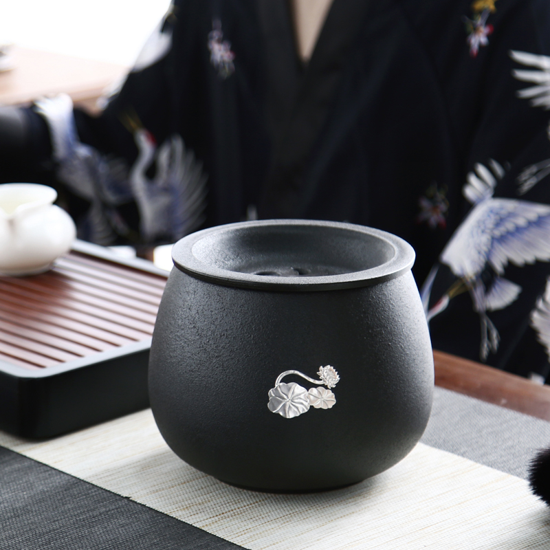 茶渣缸家用茶洗带盖复古建水钵型过滤茶渣桶水孟大号杯水洗零配件