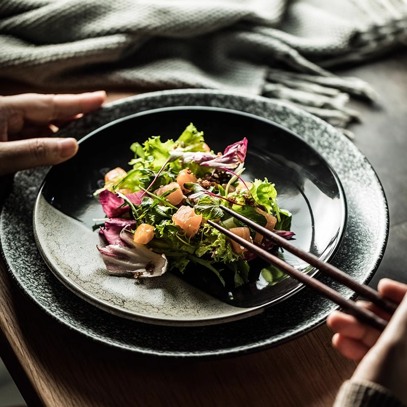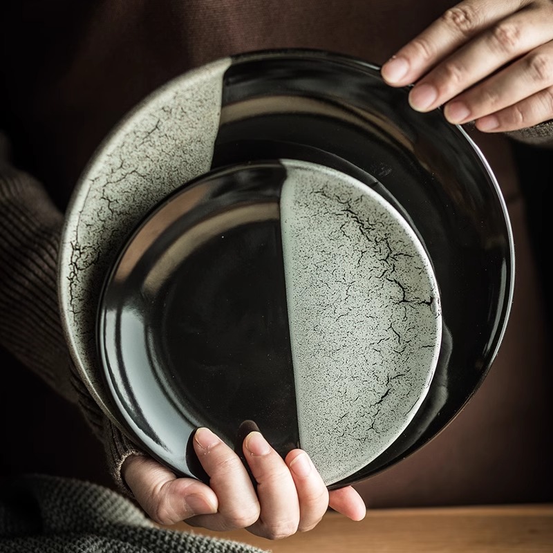 日式浅盘子平盘牛排餐盘西餐餐盘高级感圆形陶瓷盘子饺子盘肠粉盘