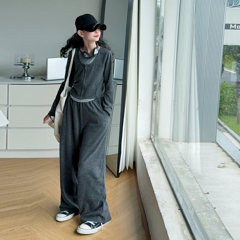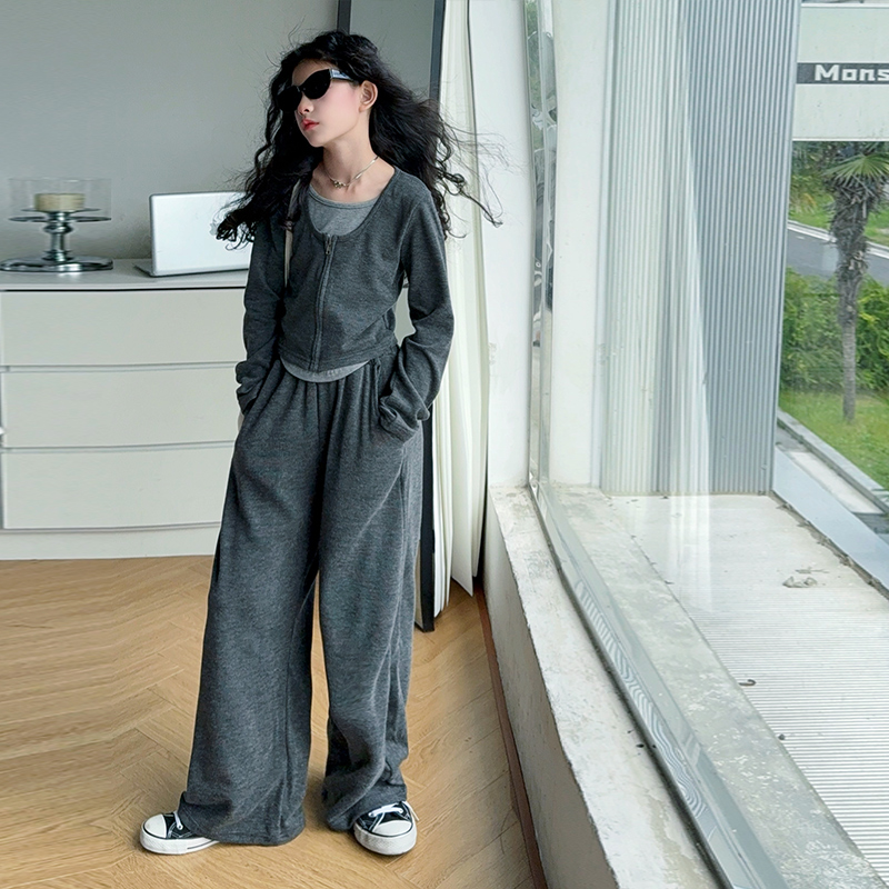 女童秋季新款洋气时髦两件套2025春秋童装休闲针织假两件运动套装