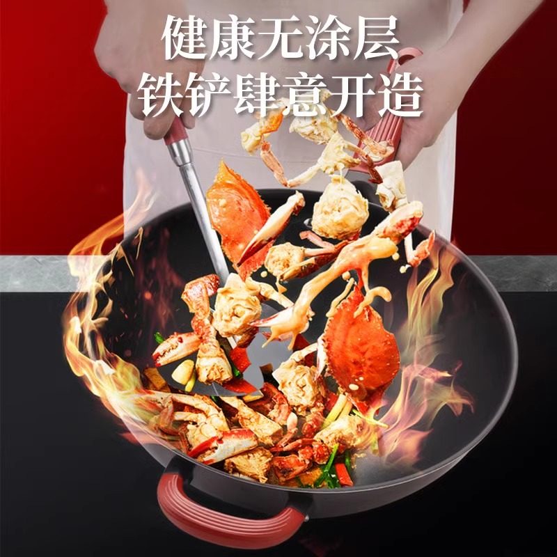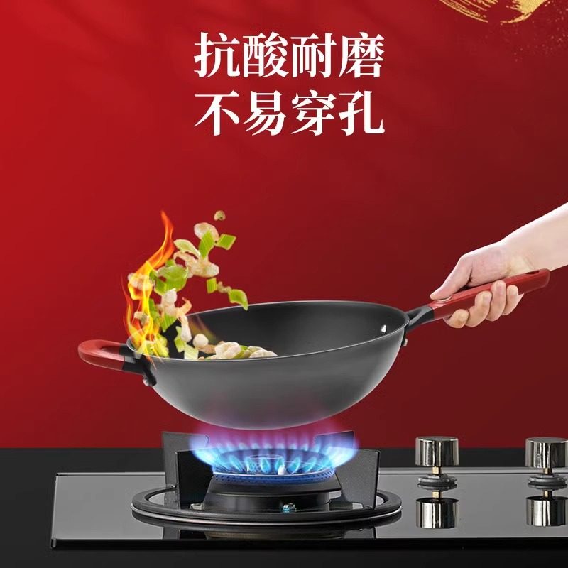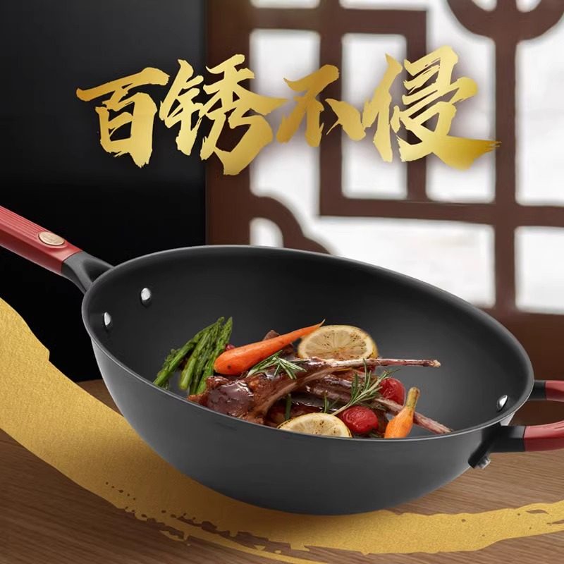 爱仕达钛铁锅家用炒菜锅明火用炒锅钛锅无涂层平底不生锈CF32T2Q