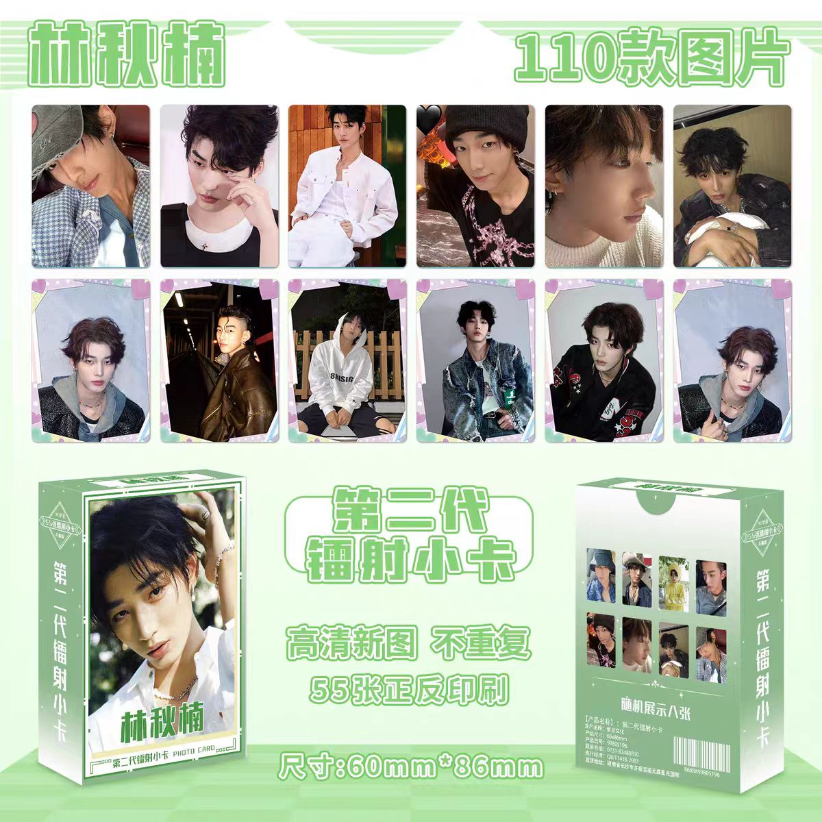 林秋楠二代镭射小卡56张双面不重复新款磨砂盒满天星影视明星周边