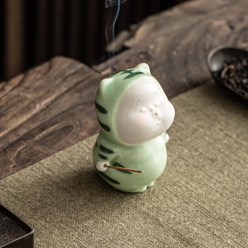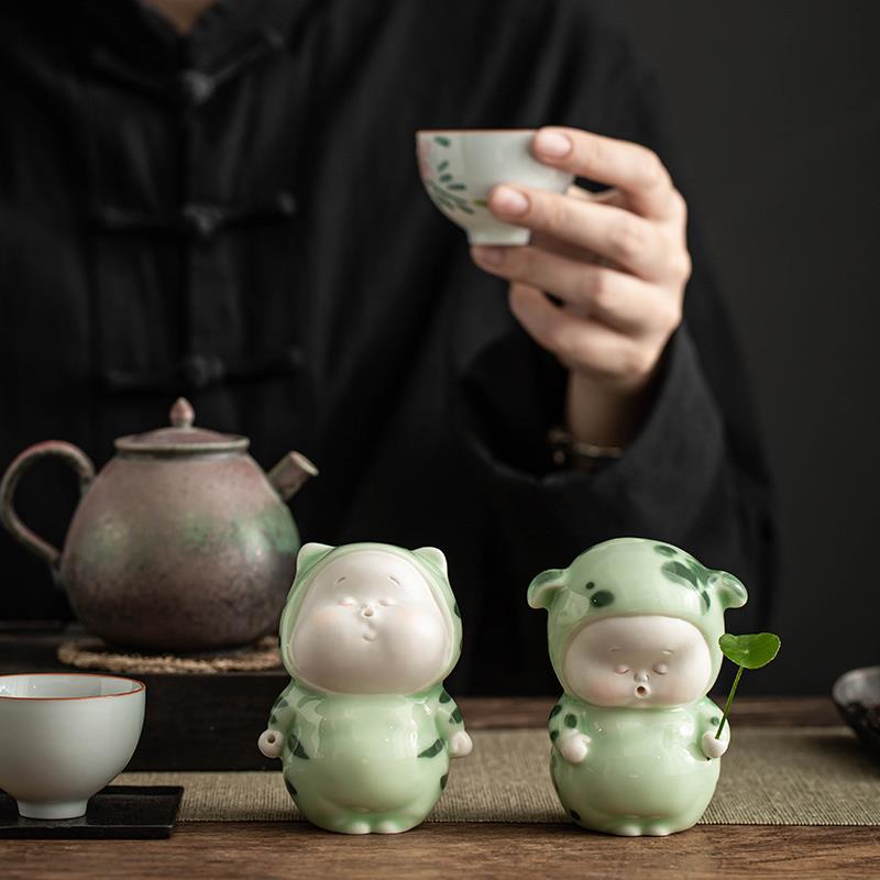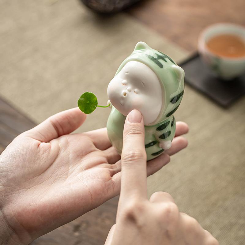 久造创意陶瓷小摆件精品可爱动物小胖虎工艺品家居客厅桌面装饰品
