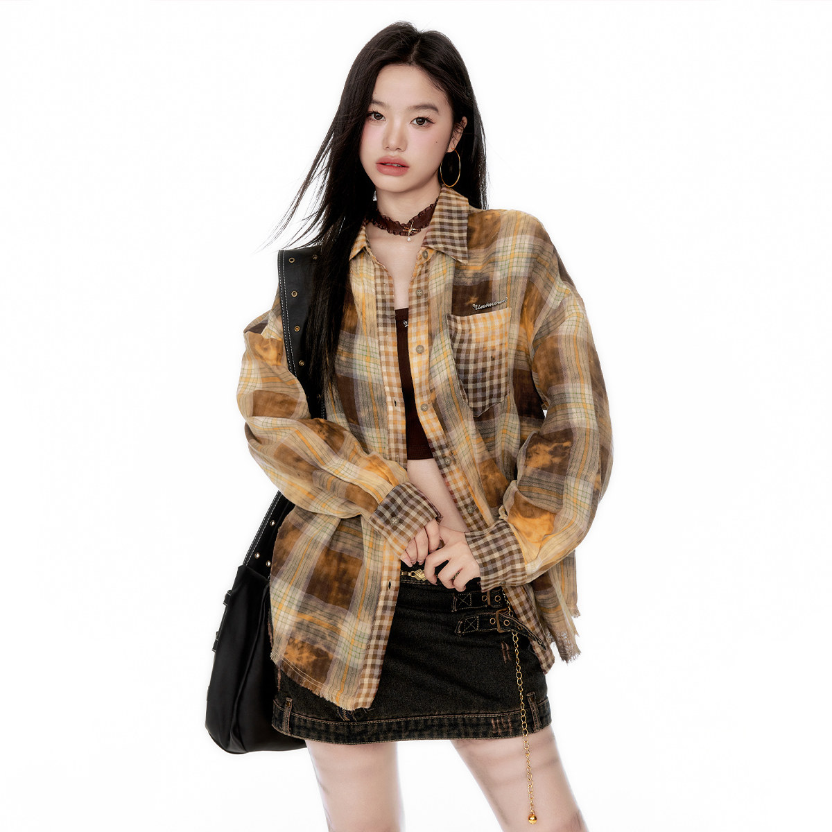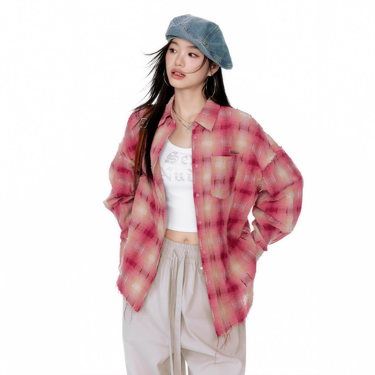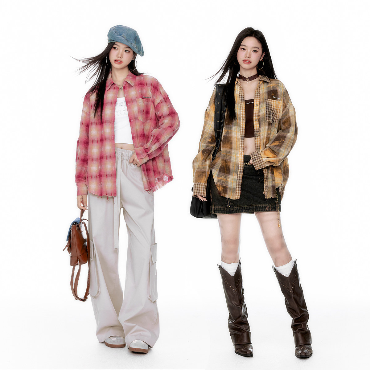 EPTISON格子衬衫女2025秋季新款宽松复古拼接高级感休闲长袖外套