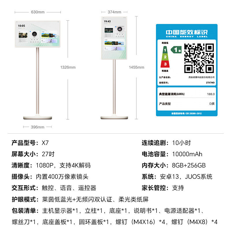 海信大白闺蜜机27X7ND女生礼物瑜伽健身大平板娱乐观影移动电视10000毫安10H长续航27英寸8核8+256GB