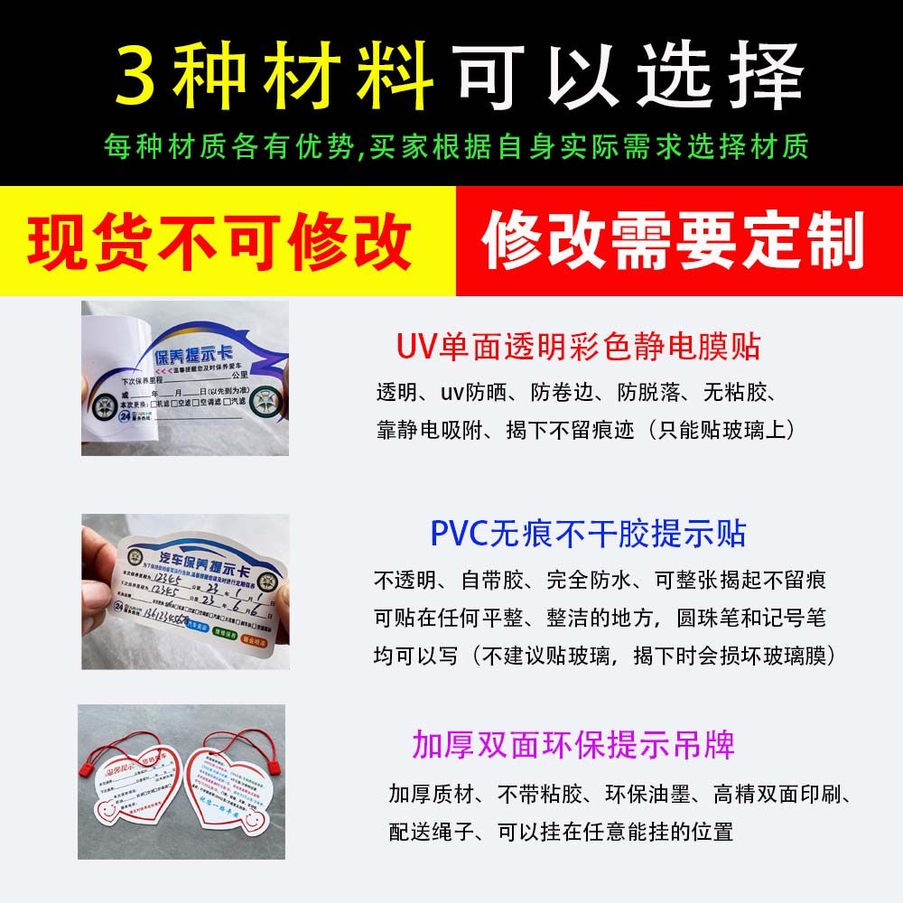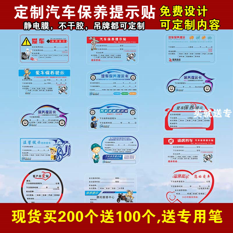 汽车保养提示贴静电贴定制汽修厂保养提醒贴纸卡里程维修保养订做