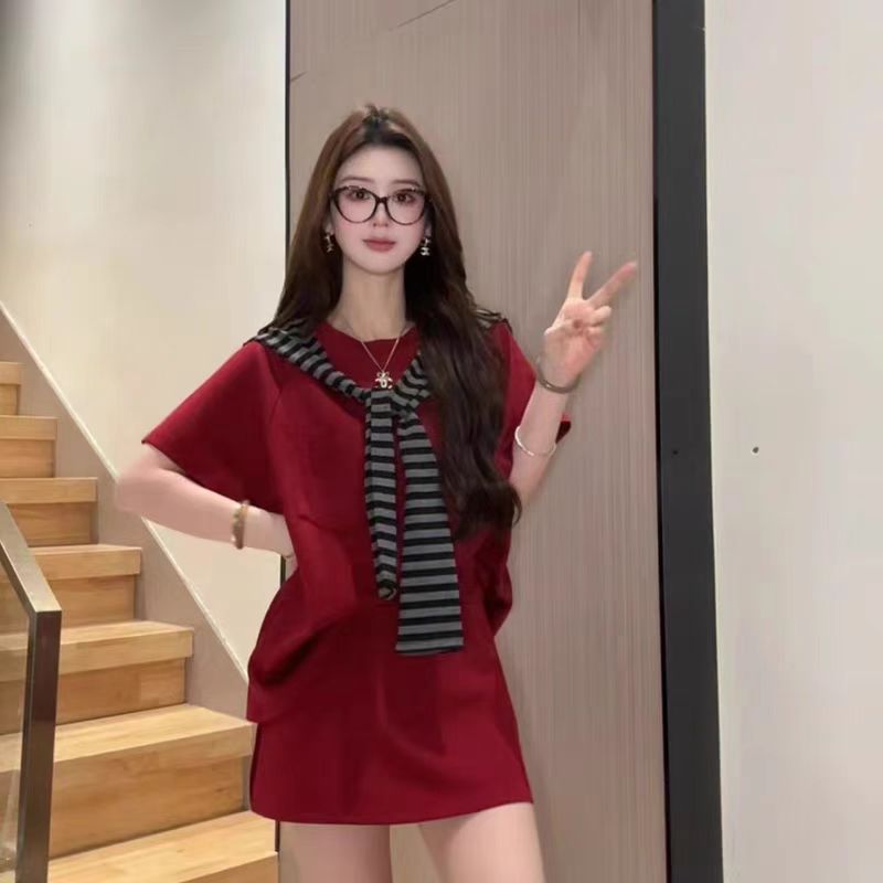 披肩三件套时尚韩系T恤休闲宽松上衣夏季半身裙新款两件套短裙潮