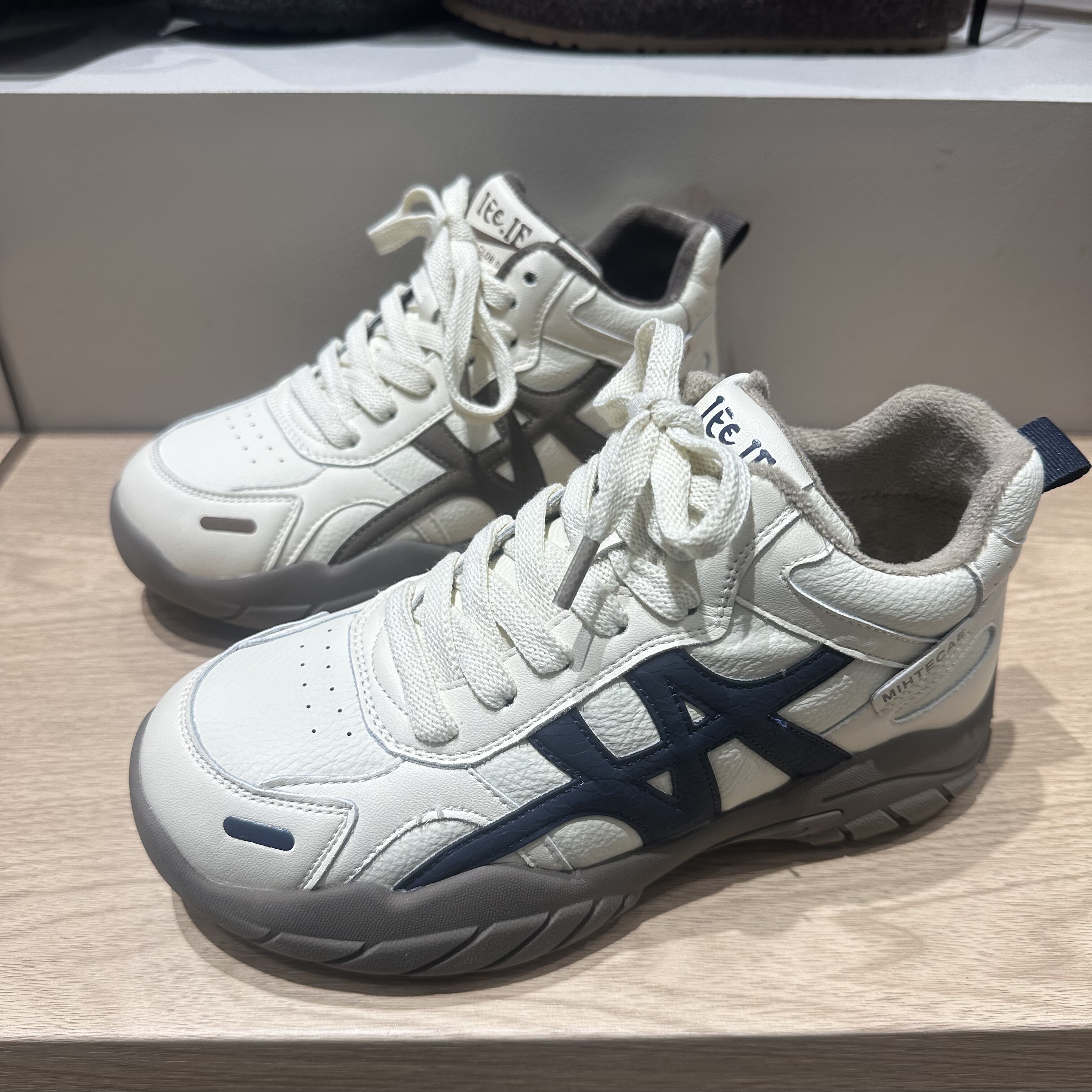 茵茵家韩版真皮高帮软底保暖小白鞋女2025秋冬季新款百搭休闲板鞋