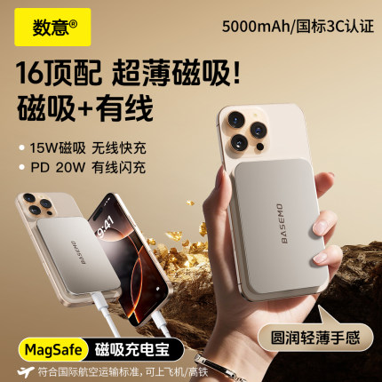 【2025新款】数意/迷你磁吸充电宝适用苹果16无线magsafe快充iPhone15pm超薄小巧安卓手机便携大容量移动电源