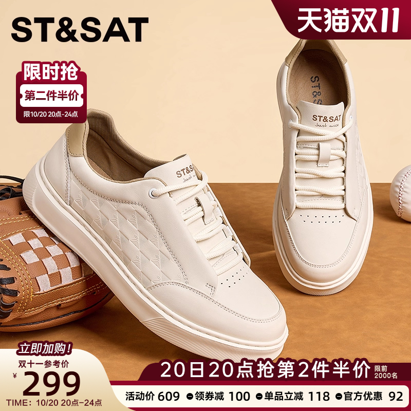 星期六鞋子男鞋2025新款春秋季透气增高小白鞋运动休闲真皮板鞋男