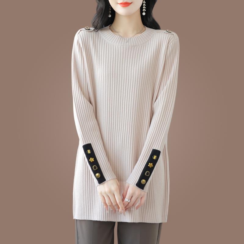 中长款配大衣针织羊毛衫女士秋冬新款时尚圆领内搭加厚毛衣打底衫