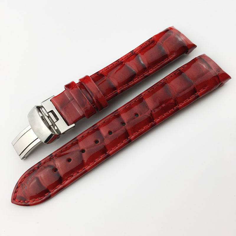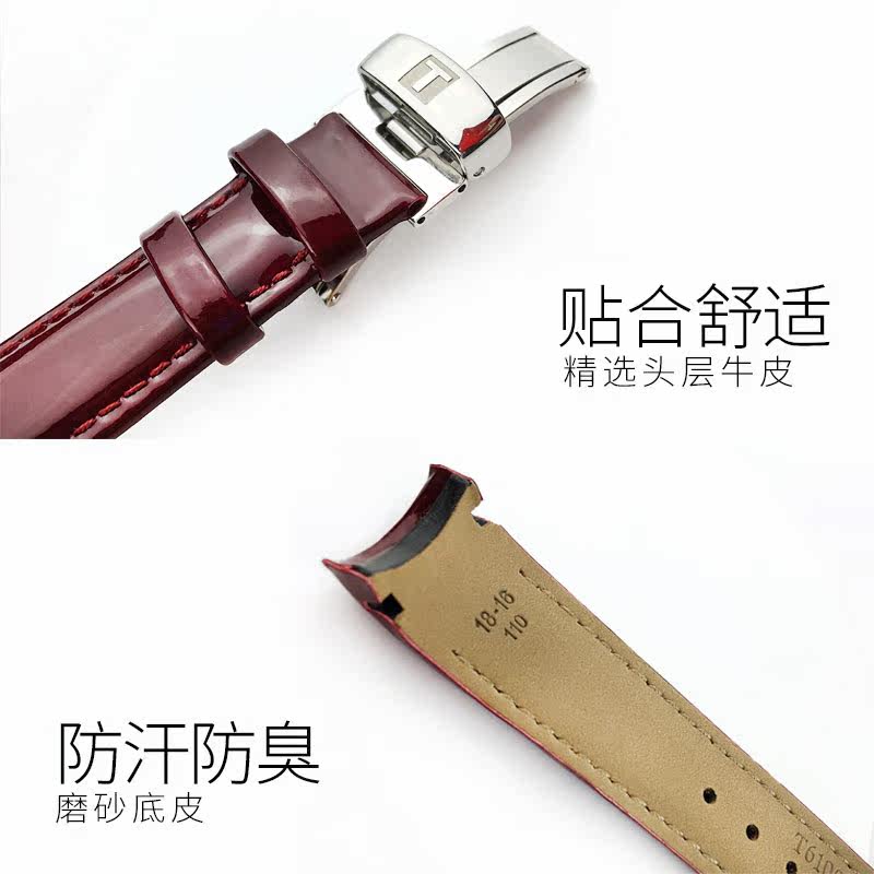 真皮表带适用天梭1853库图女款T035 弧形接口酷图T035207红色18mm