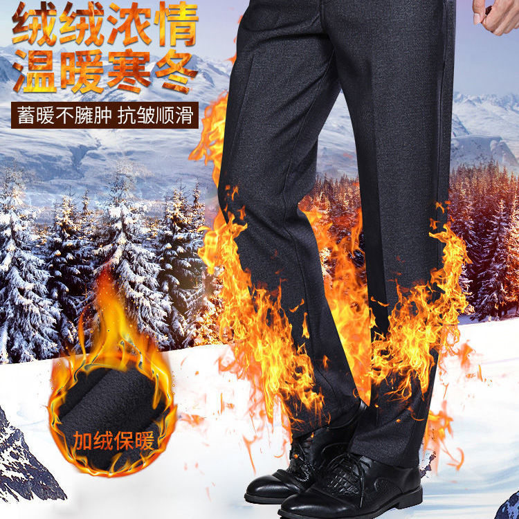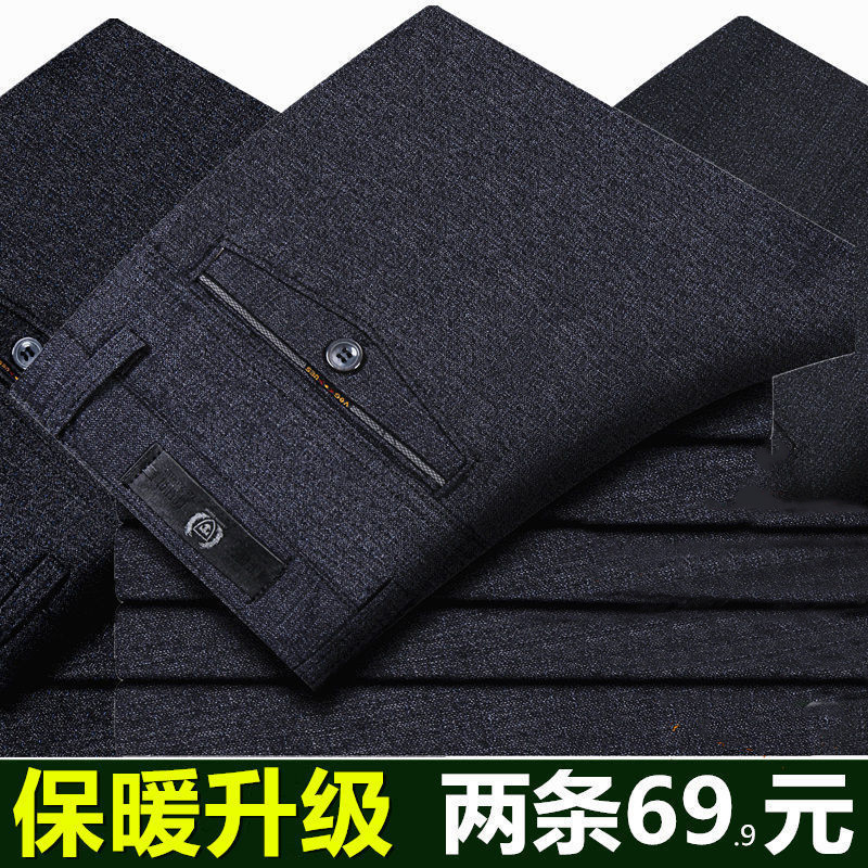 秋冬季加绒加厚中老年男士休闲裤免烫工艺长裤宽松爸爸装男西裤子